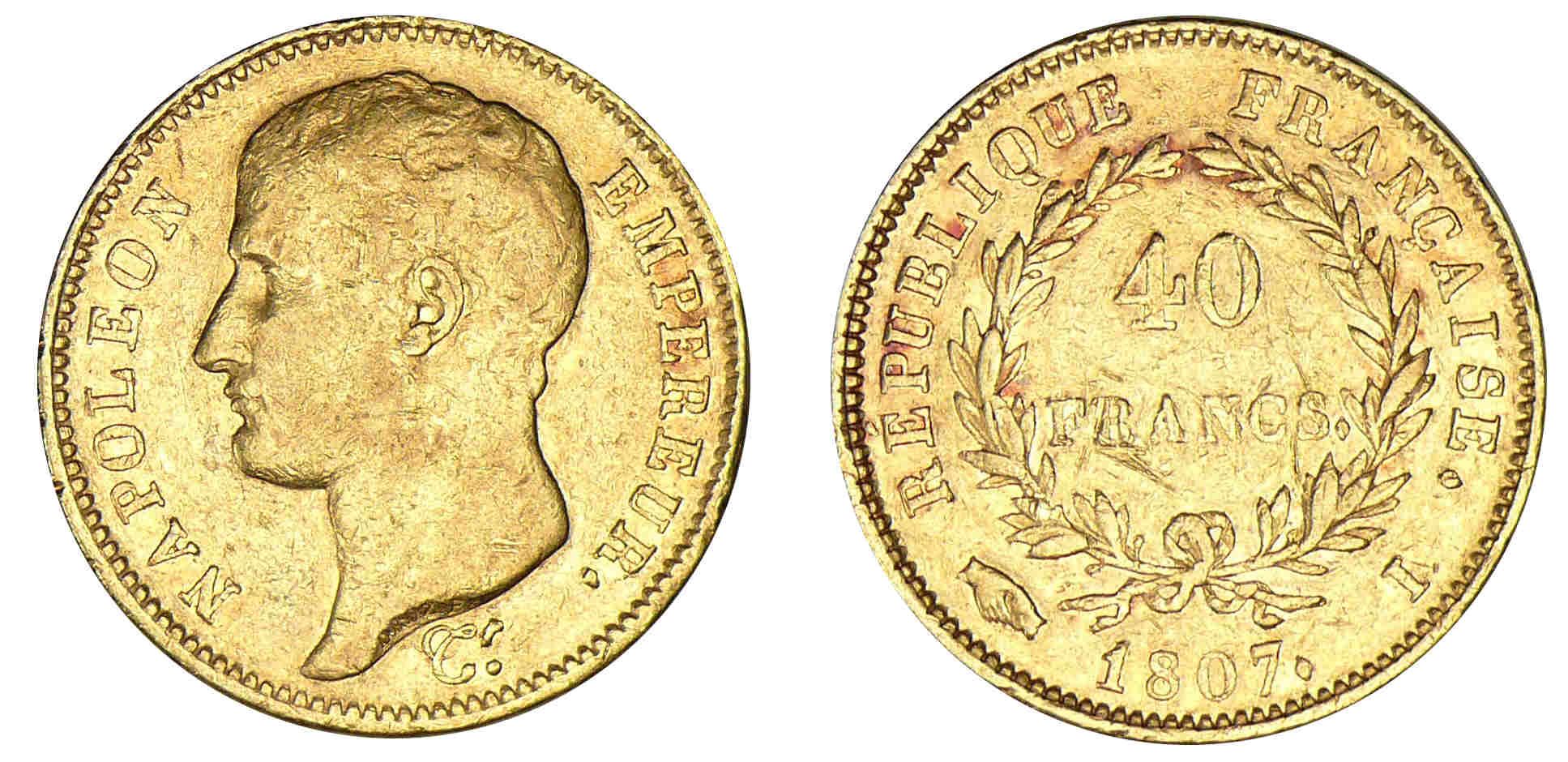 40 francs Napoléon I tête nue type transitoire 1807 I (Limoges) Frappe médaille