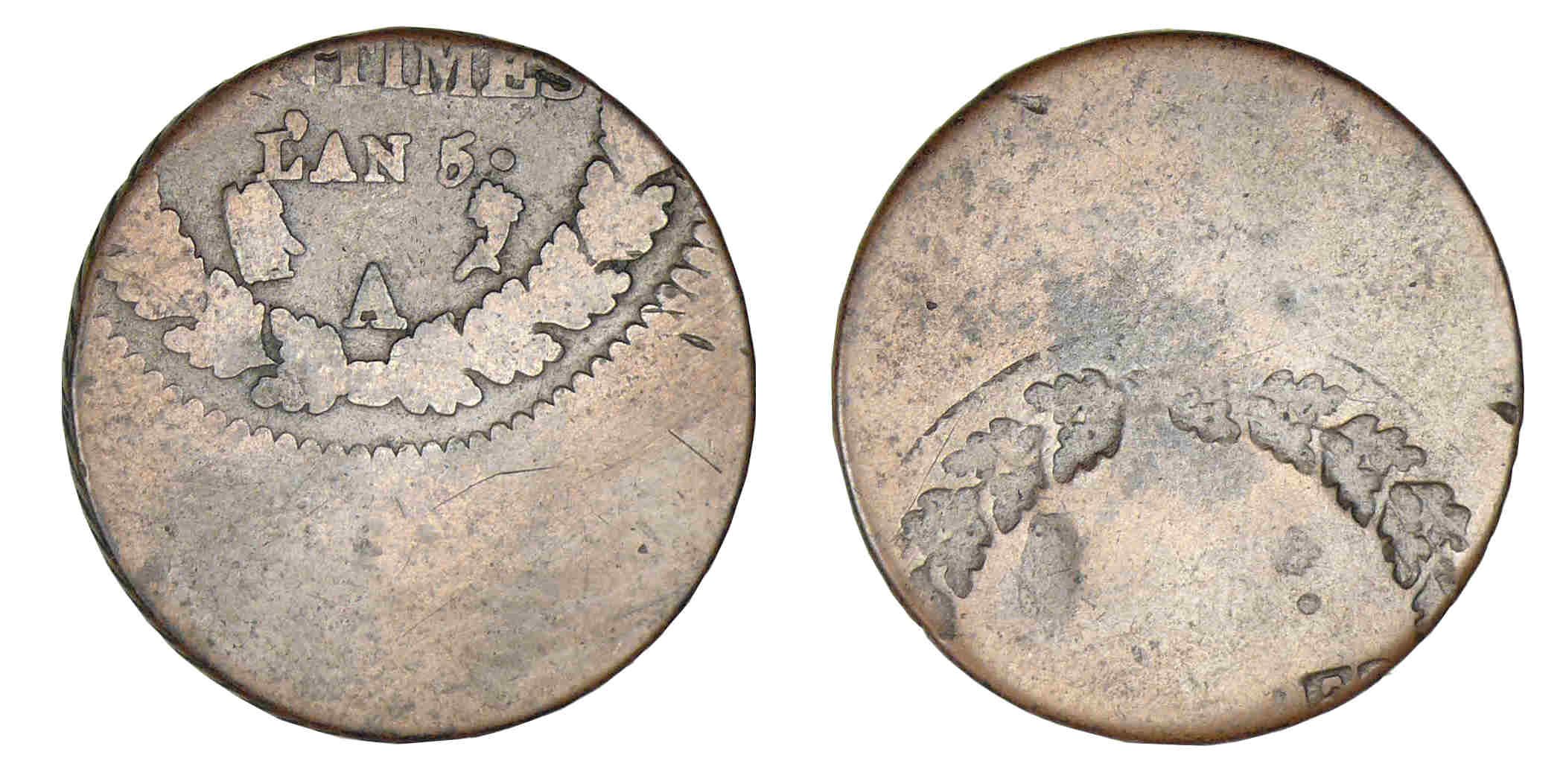 Avers : A/ REPUBLIQUE – FRANÇAISE. Buste drapé de la Liberté à gauche coiffée du bonnet phrygien.