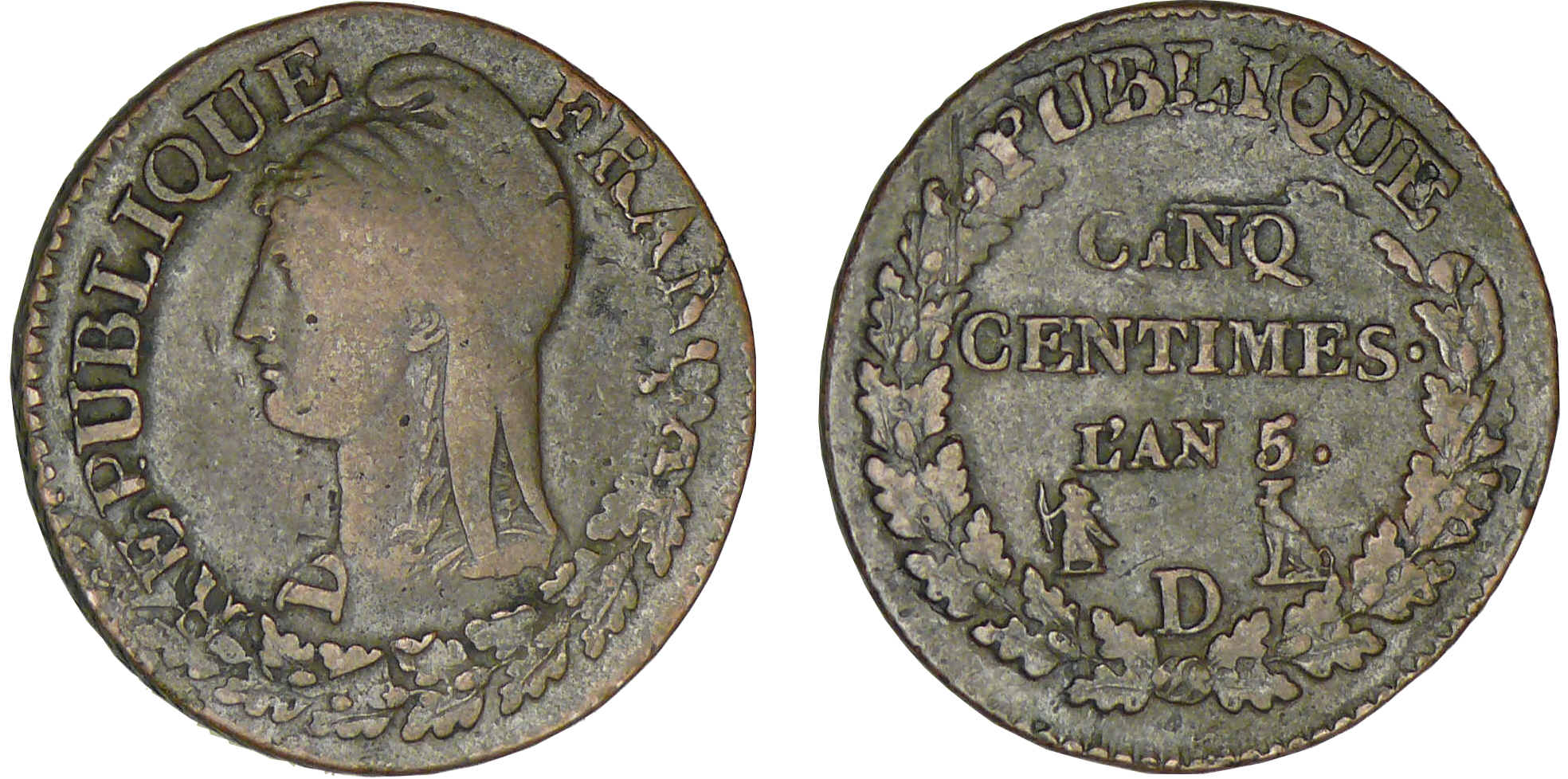 / 5 centimes Dupré – grand module – An 5 D (Lyon)