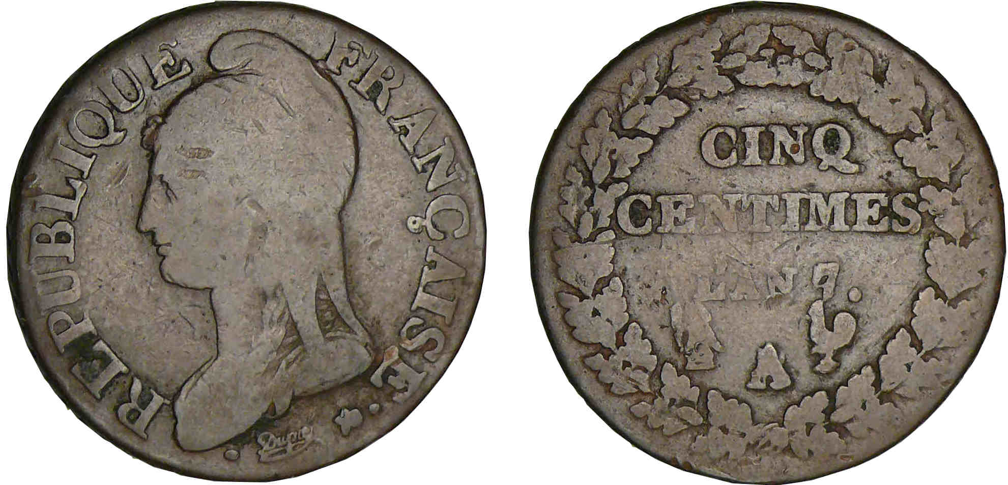 5 centimes Dupré – grand module – An 7 sur 5 A sur R (Paris)