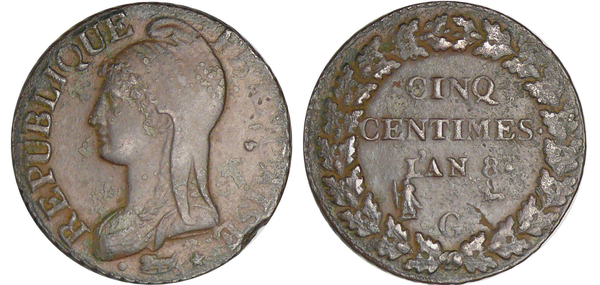 5 centimes Dupré – grand module – An 8 G (Genève)