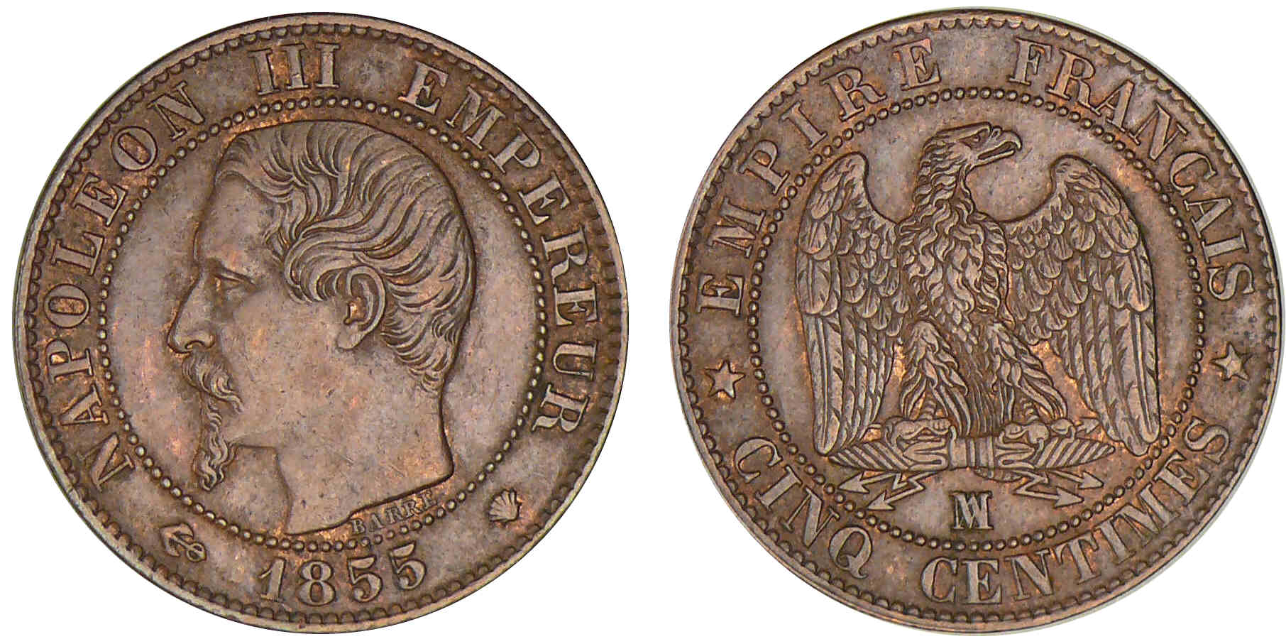 5 centimes Napoléon III tête nue 1855 MA (Marseille)