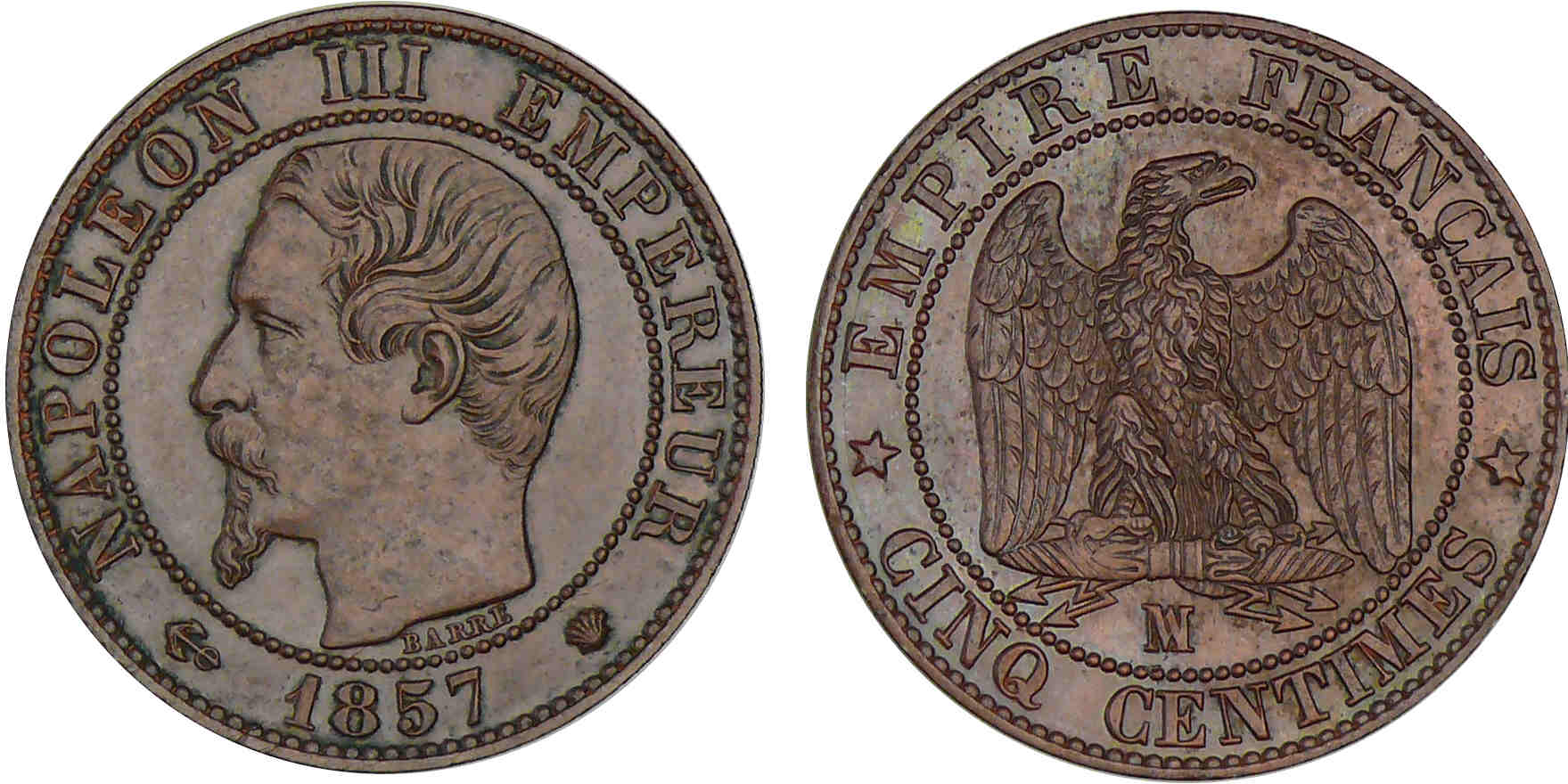 5 centimes Napoléon III tête nue 1857 MA (Marseille)