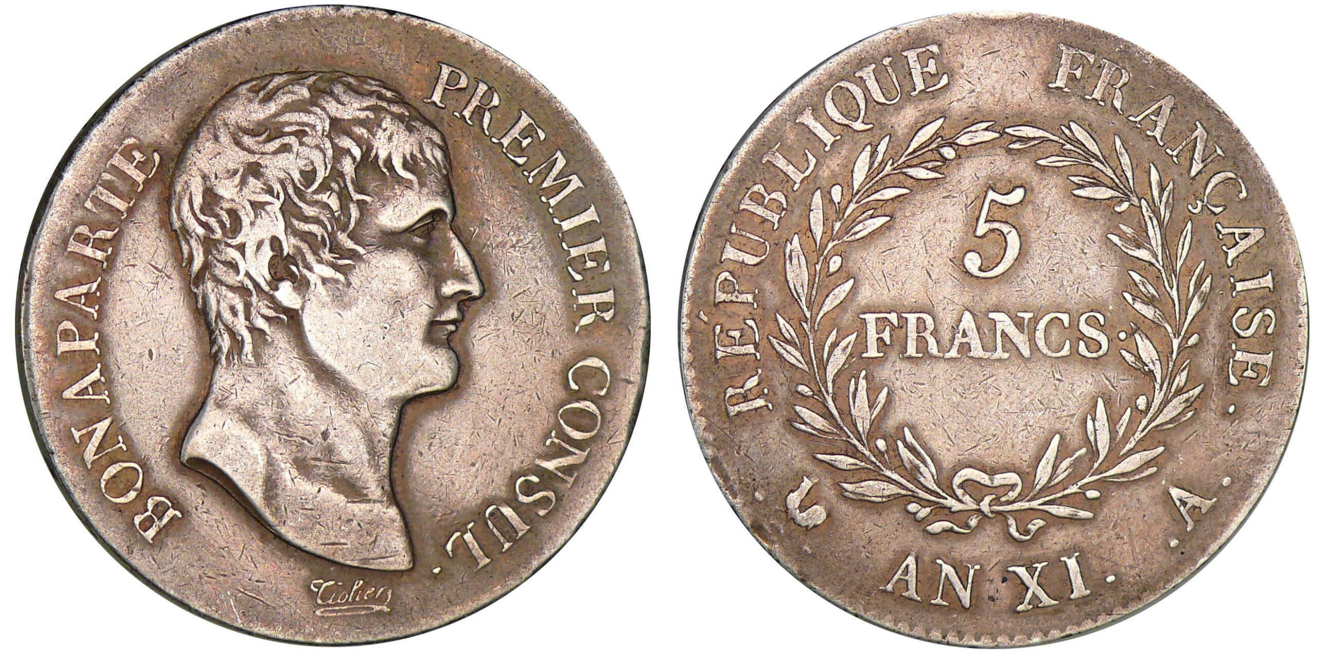 / 5 francs Bonaparte premier consul – An XI A (Paris)