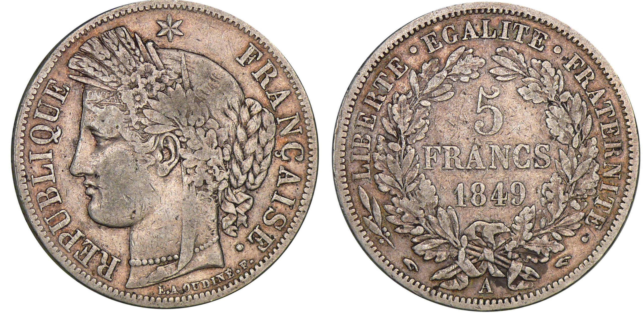 5 francs Cérès 1849 A (Paris) – Différents main/main