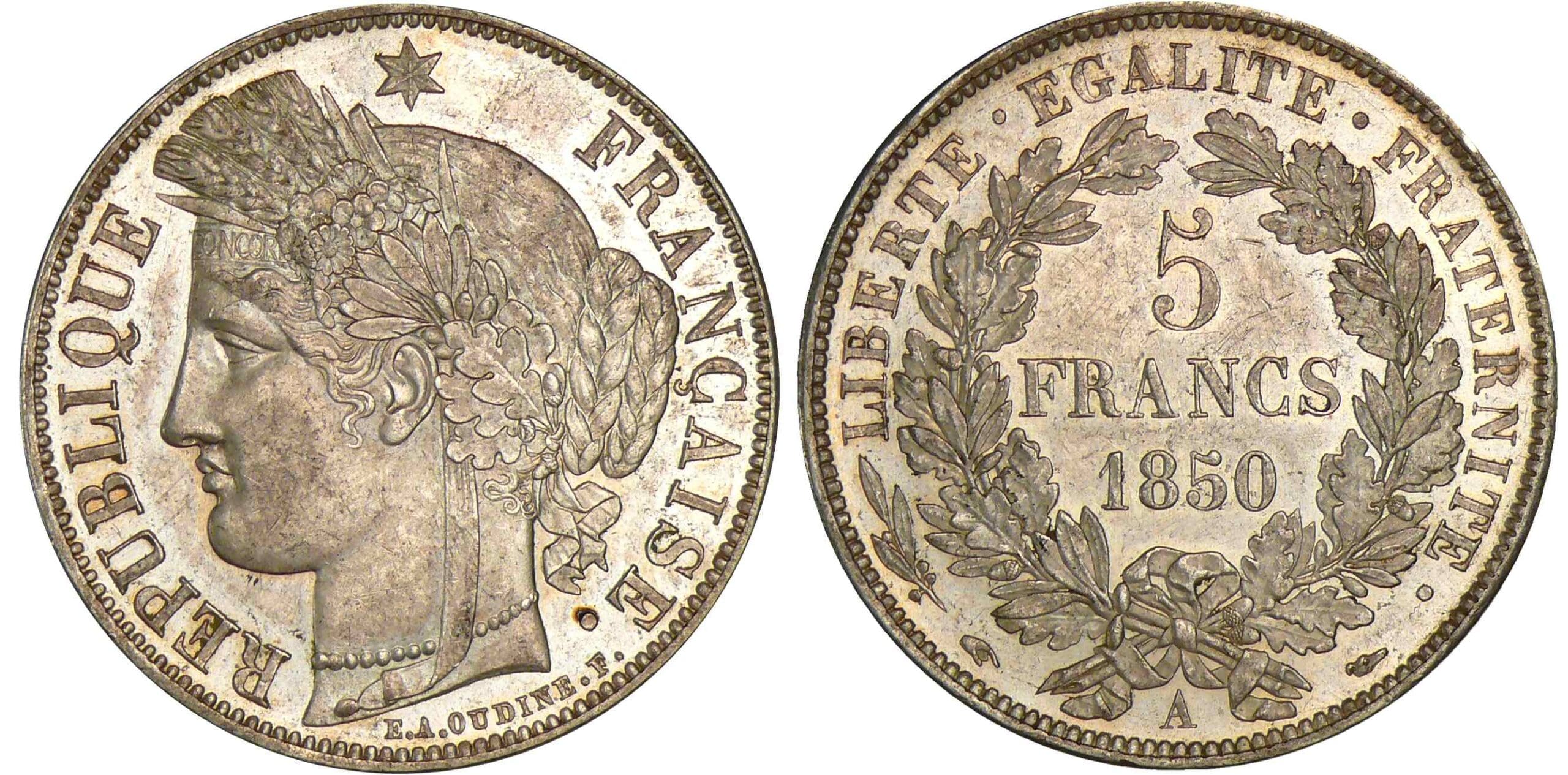 / 5 francs Cérès 1850 BB (Strasbourg)