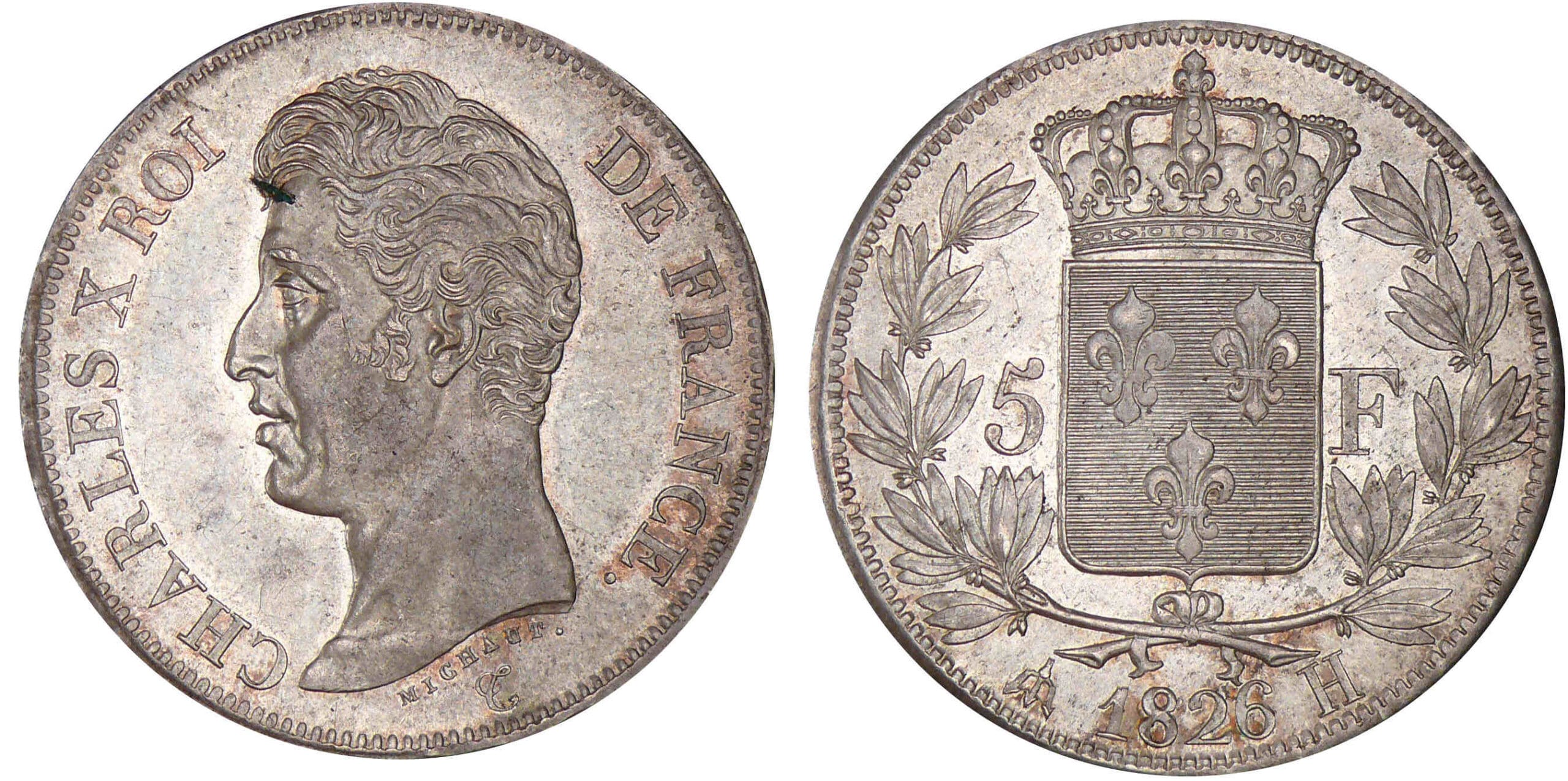 / 5 francs Charles X – 1er type 1826 H (La Rochelle)