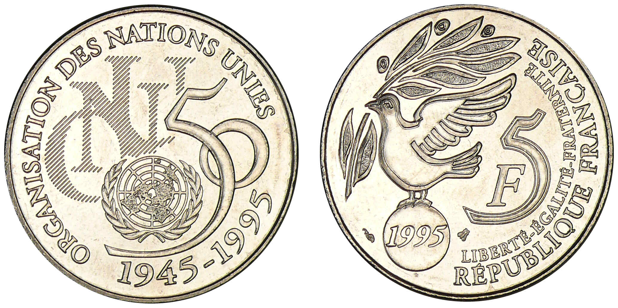 / 5 francs cinquantenaire de l’ONU 1995