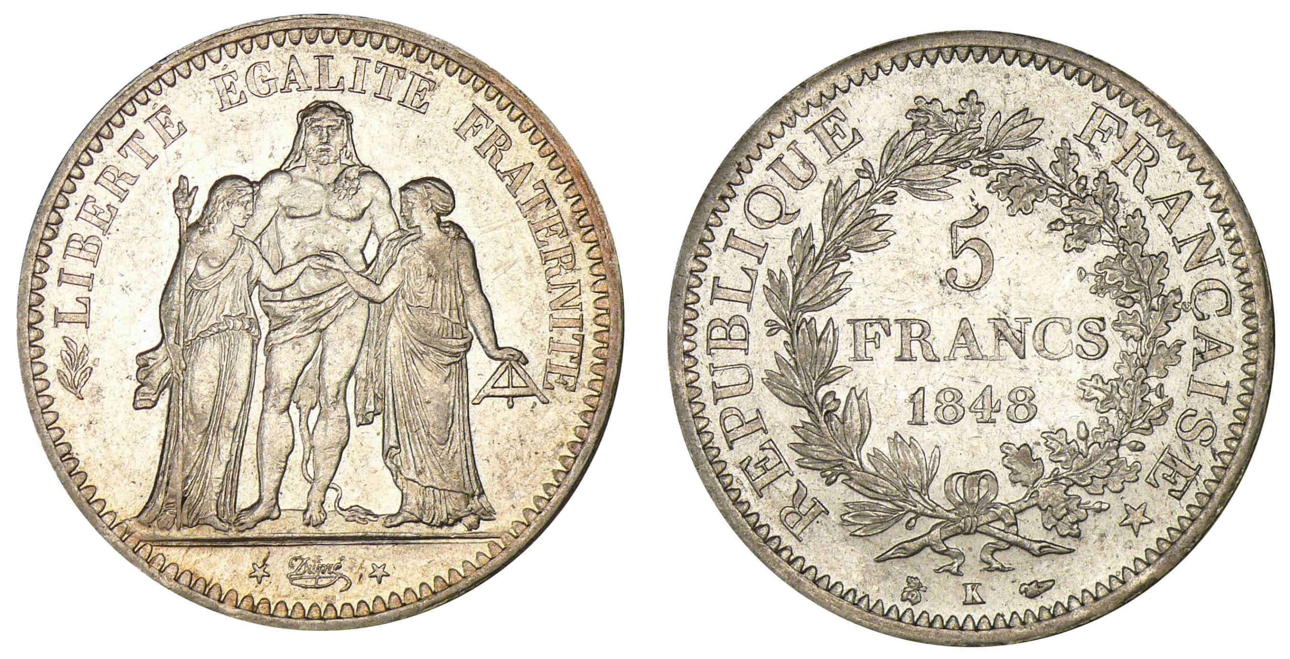 / 5 francs Hercule 1848 K (Bordeaux)