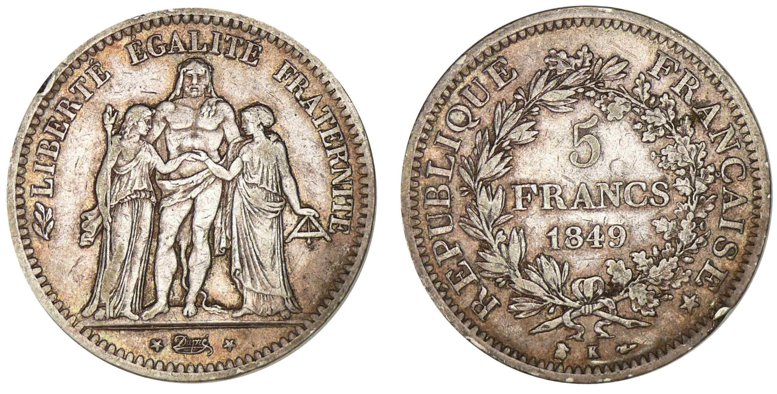 / 5 francs Hercule 1849 K (Bordeaux)