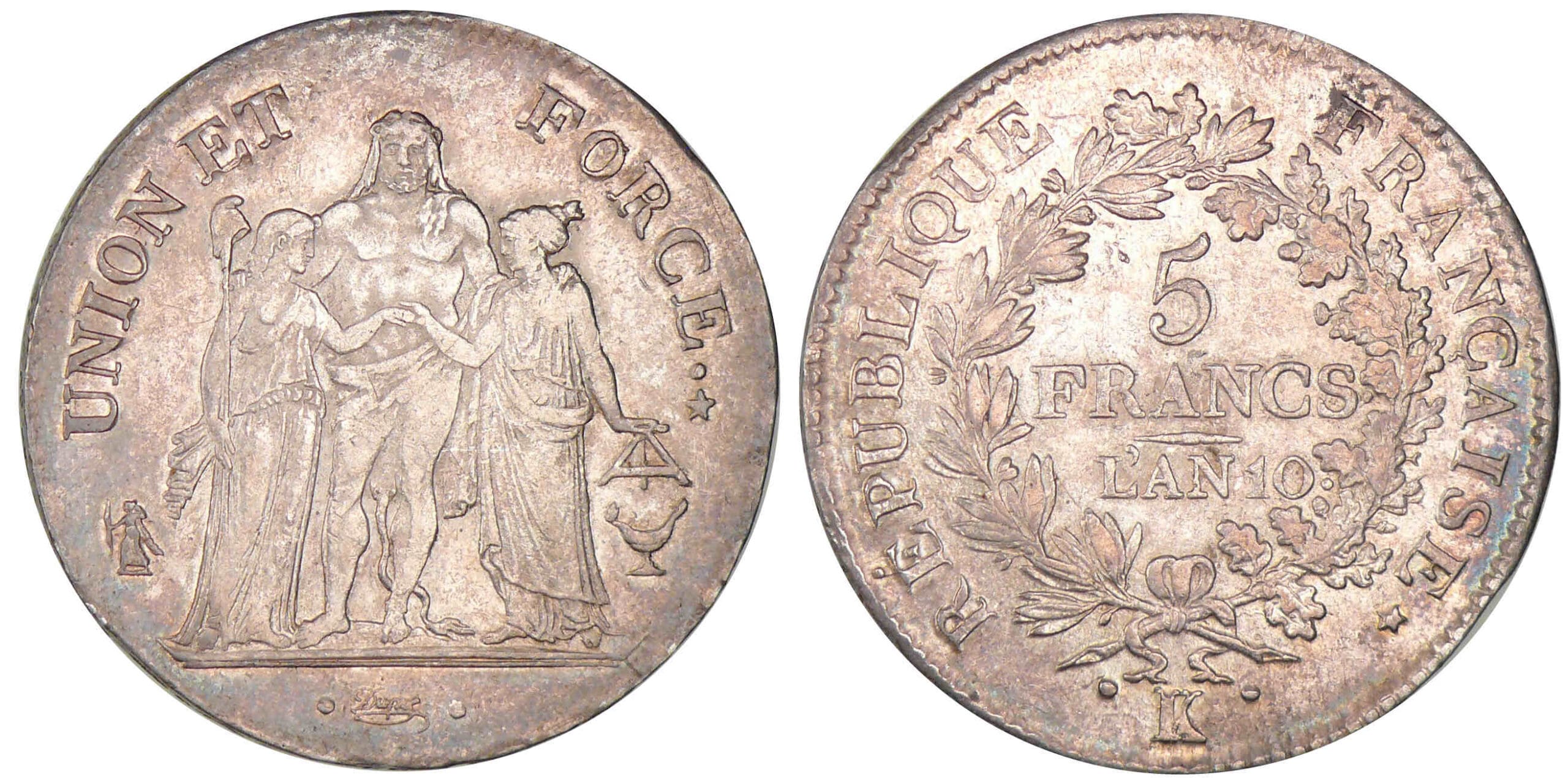 5 francs Hercule union et force – An 10 K (Bordeaux)