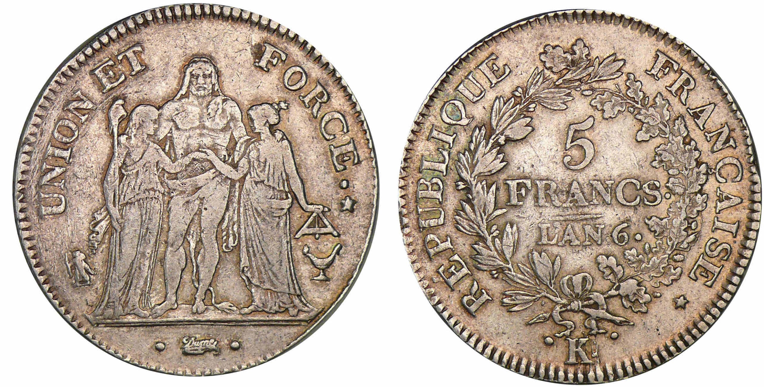 5 francs Hercule union et force – An 6 K (Bordeaux)