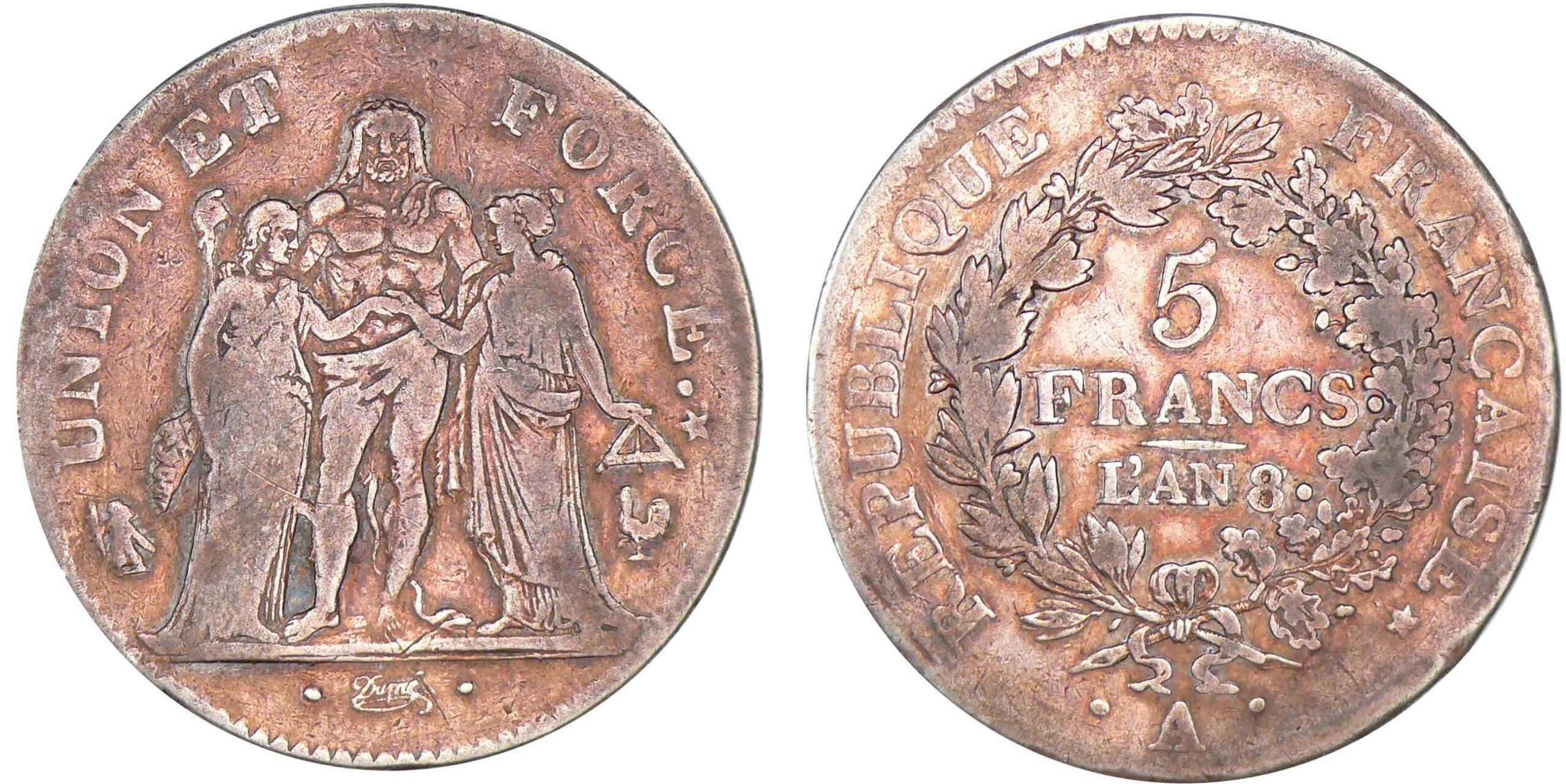 5 francs Hercule union et force – An 8/7 A (Paris)