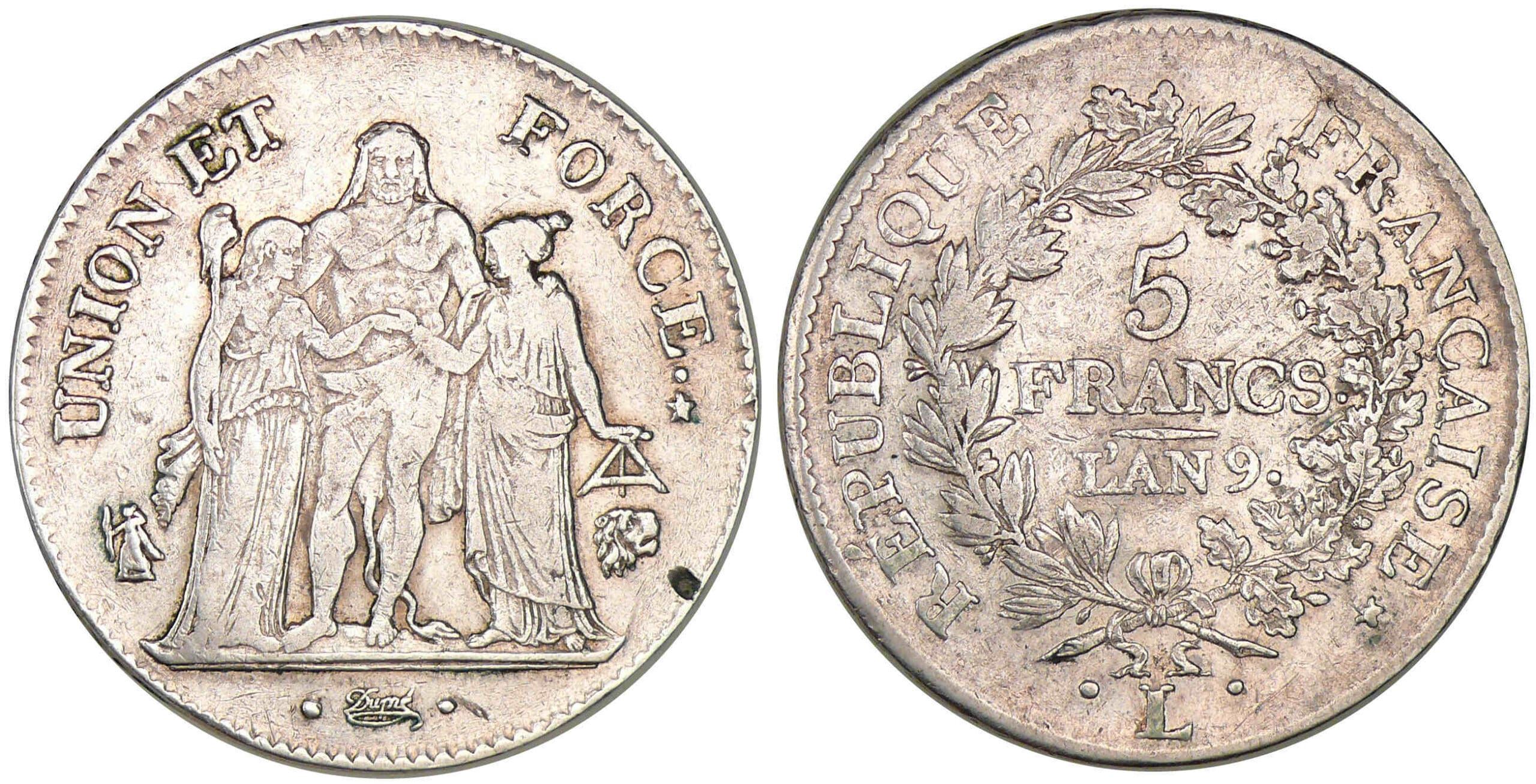5 francs Hercule union et force – An 9 L (Bayonne)