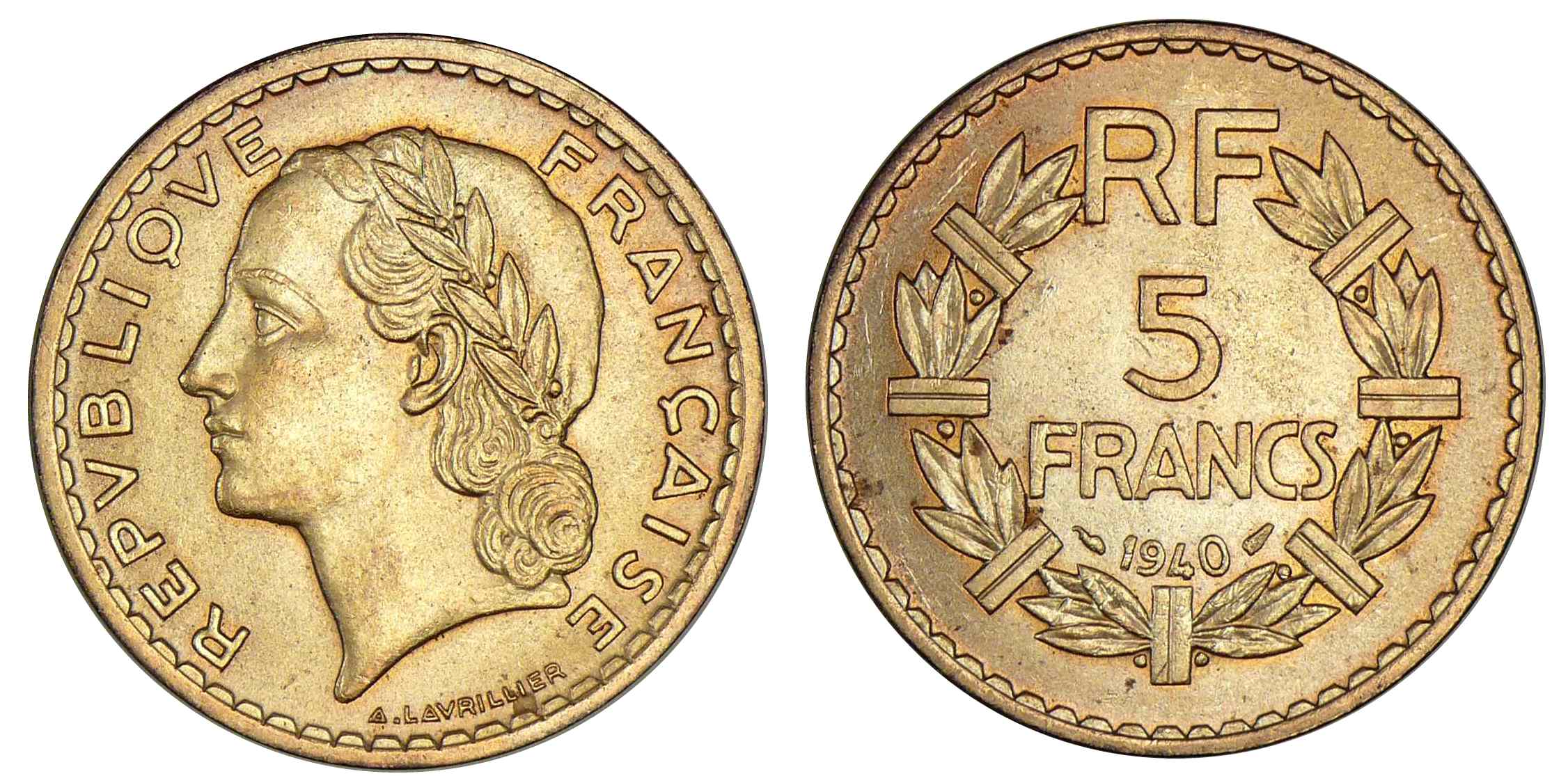 5 francs Lavrillier bronze alu 1940