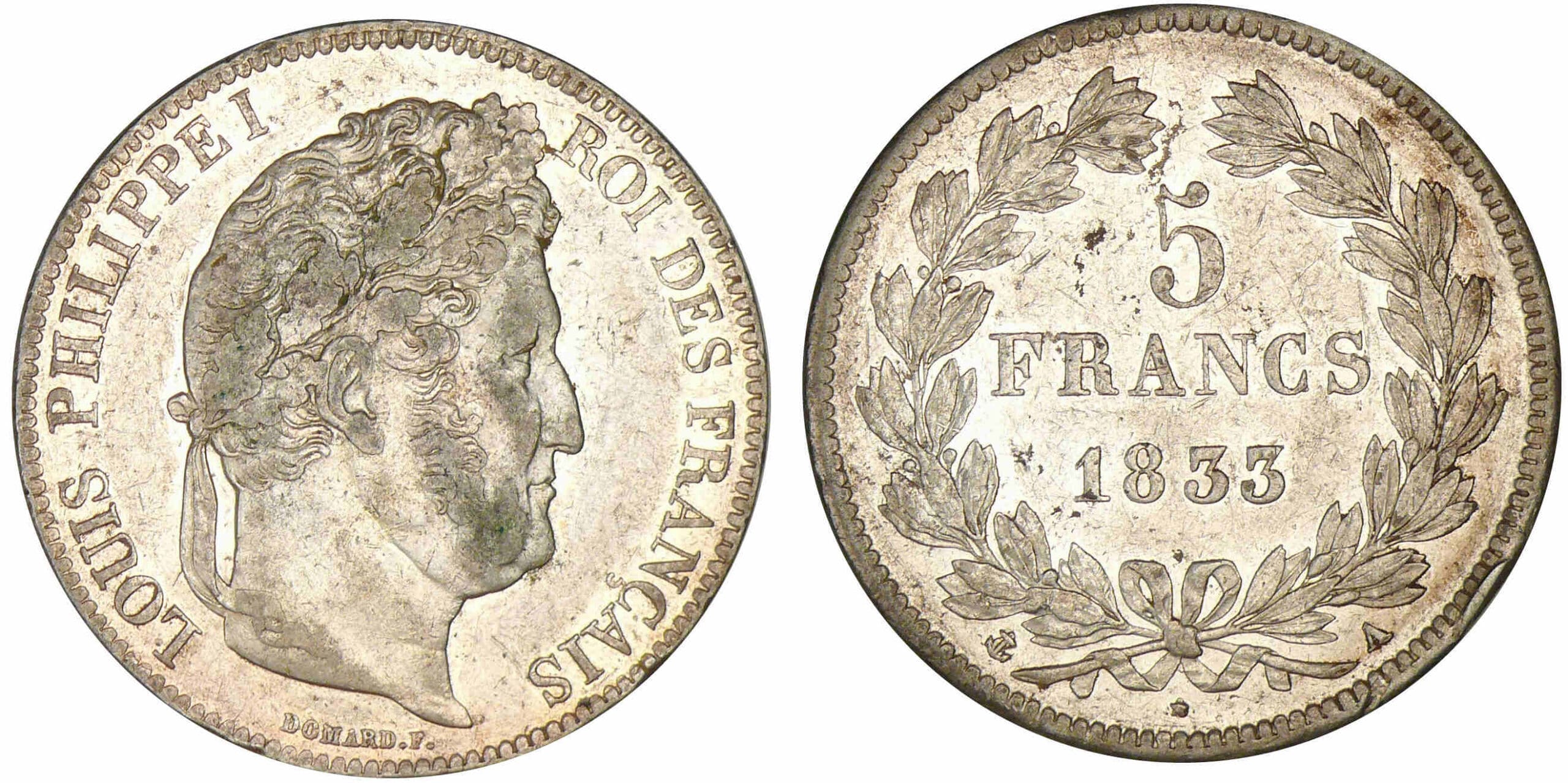 5 francs Louis-Philippe I – tête laurée- 2ème type – 1833 A (Paris)