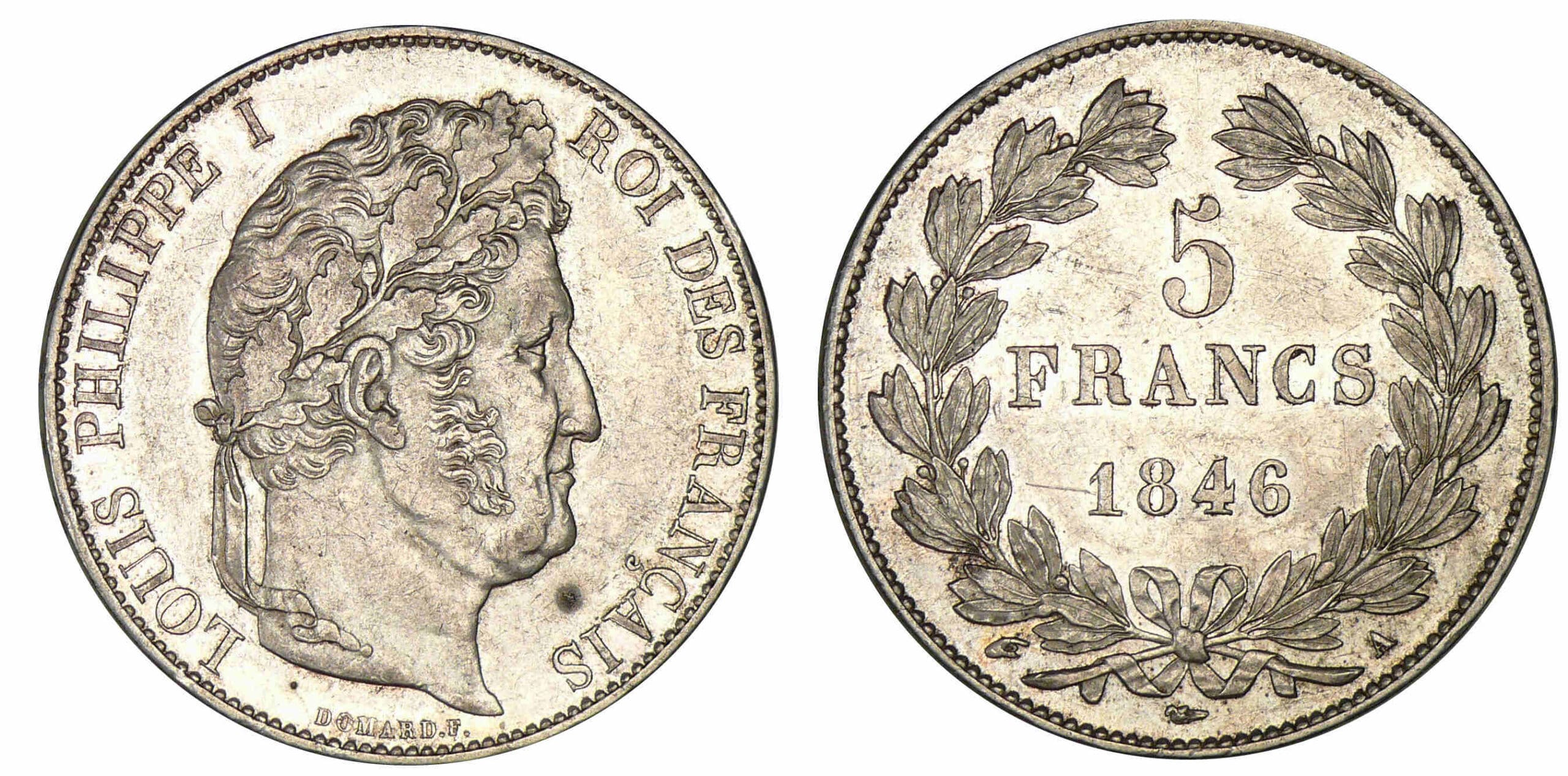 5 francs Louis-Philippe I – tête laurée – 3ème type – 1846 A (Paris)