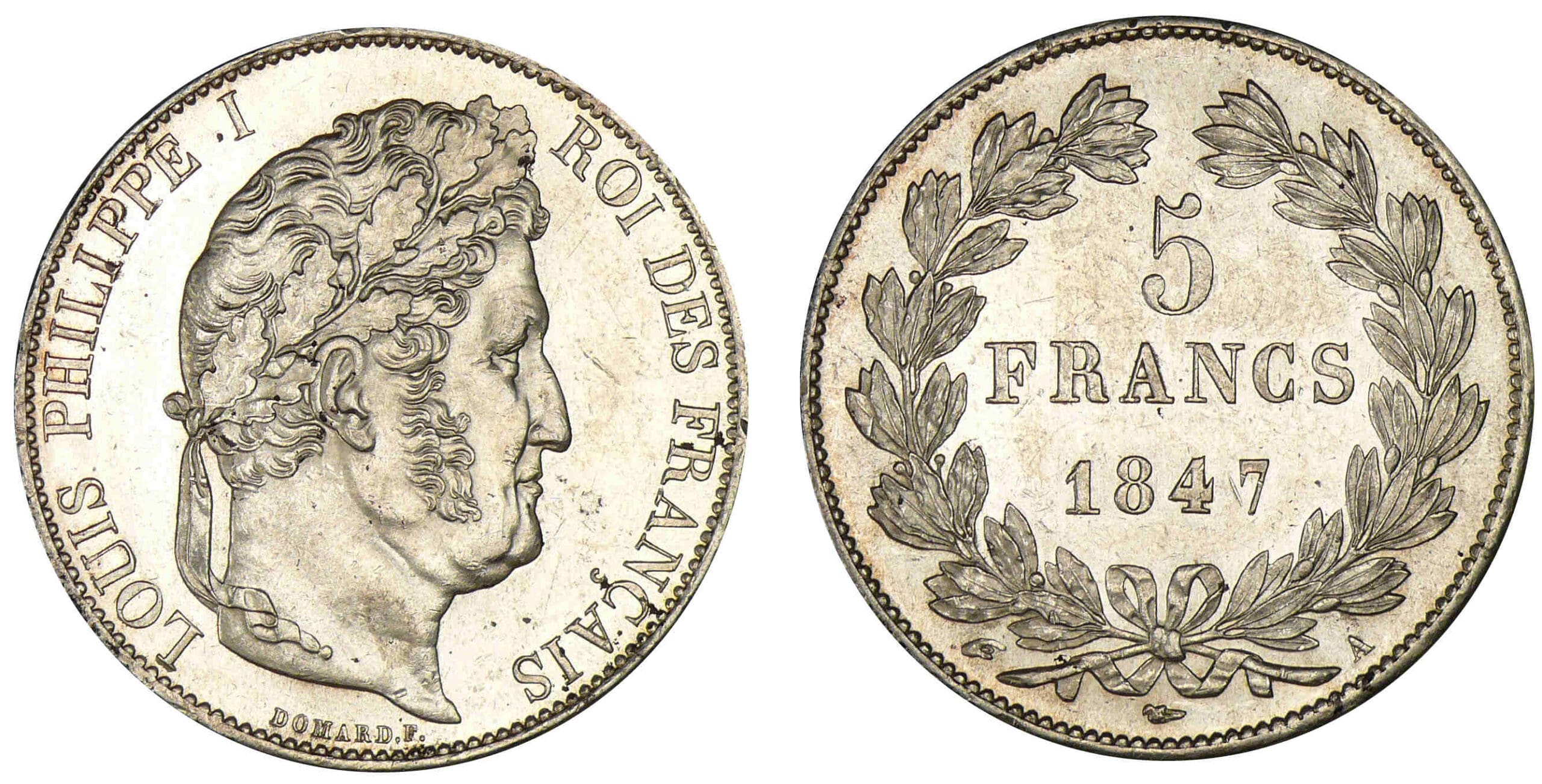 5 francs Louis-Philippe Ier tête laurée – 3ème type 1847 A (Paris)