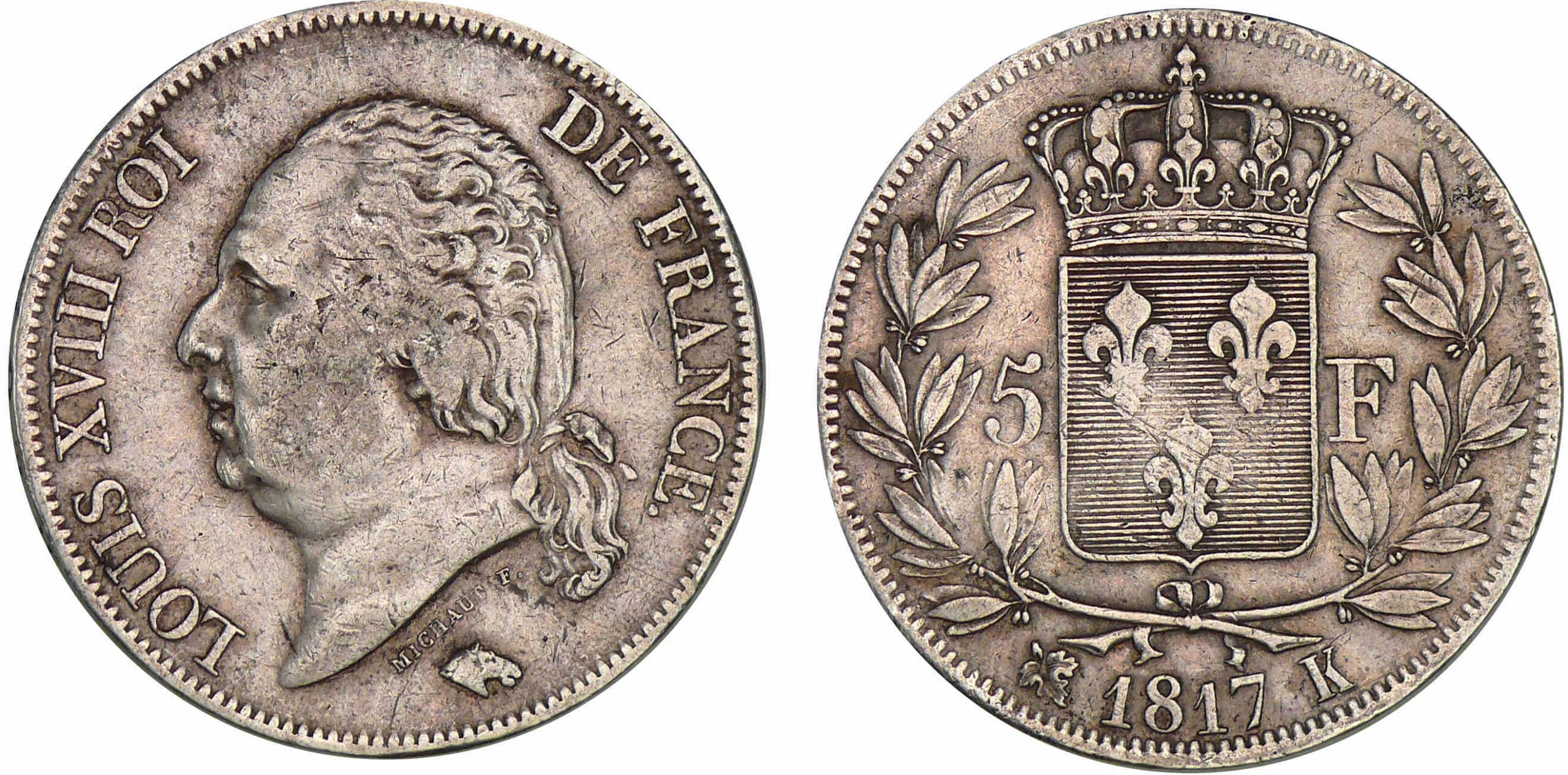 5 francs Louis XVIII au buste nu 1817 K (Bordeaux)