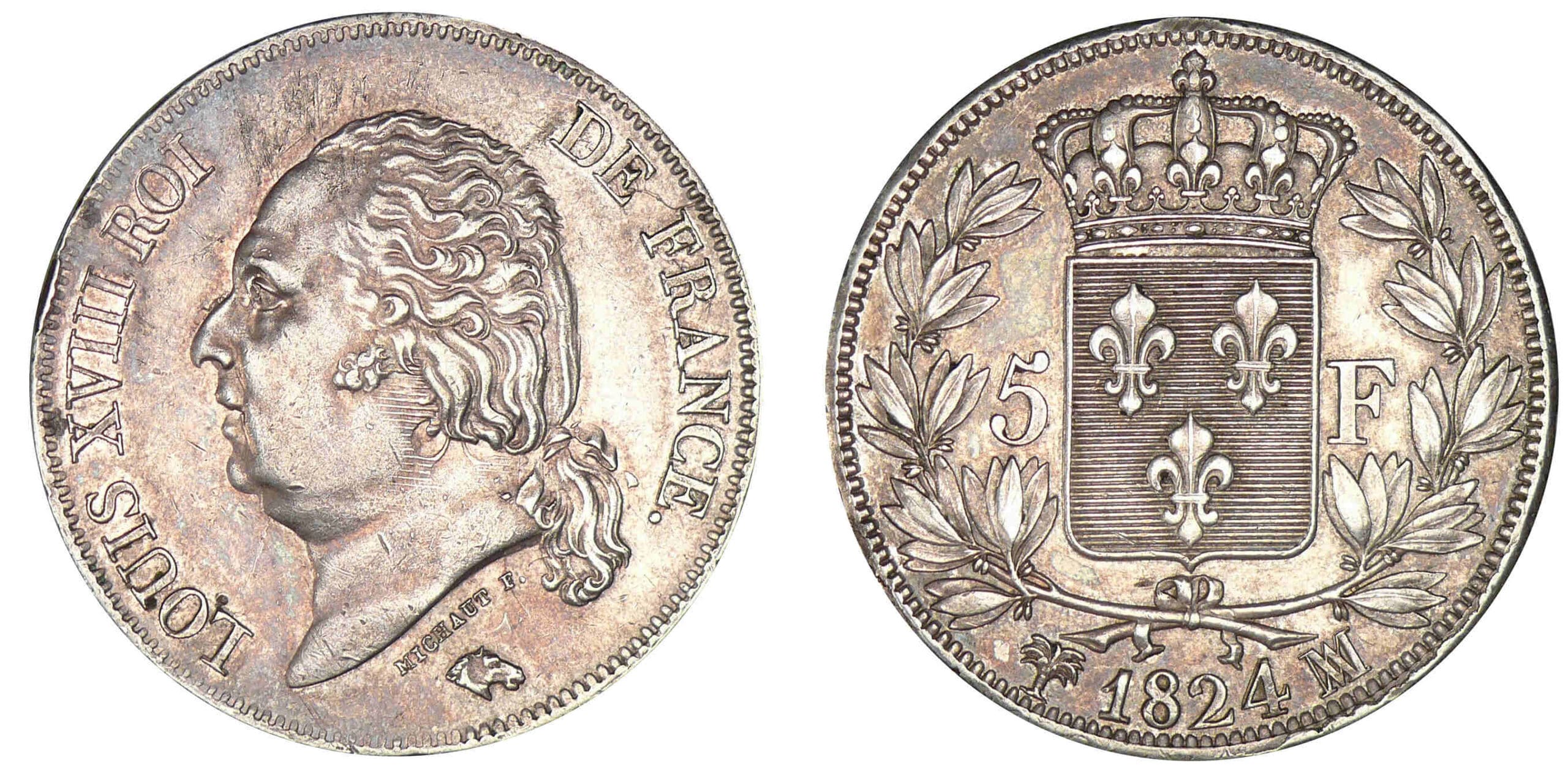 5 francs Louis XVIII au buste nu 1824 MA (Marseille)