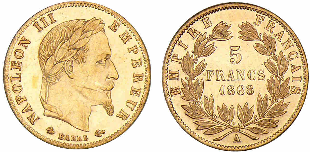 5 francs Napoléon III tête laurée 1868 A (Paris)