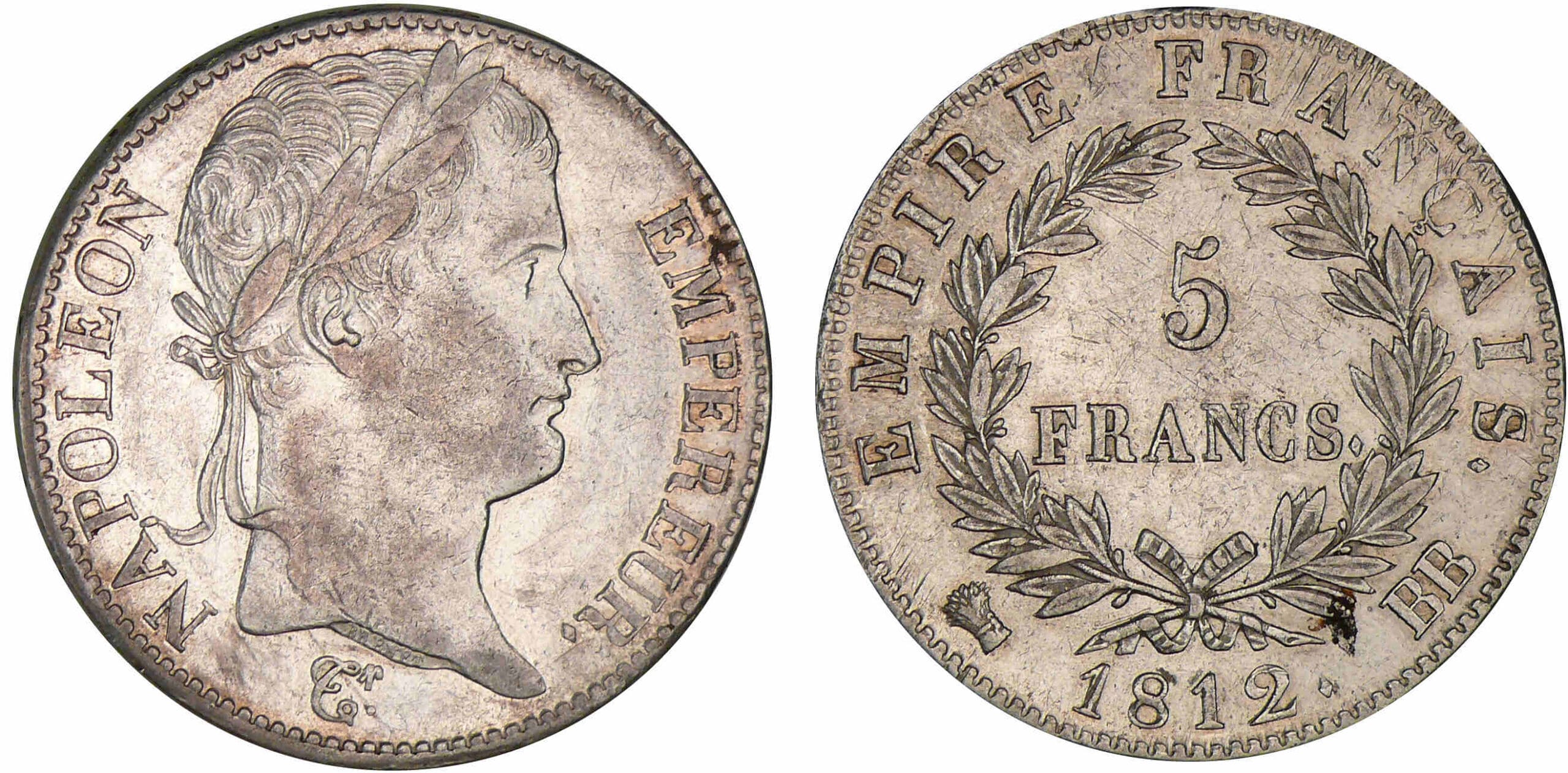 / 5 francs Napoléon revers empire 1812 BB (Strasbourg)