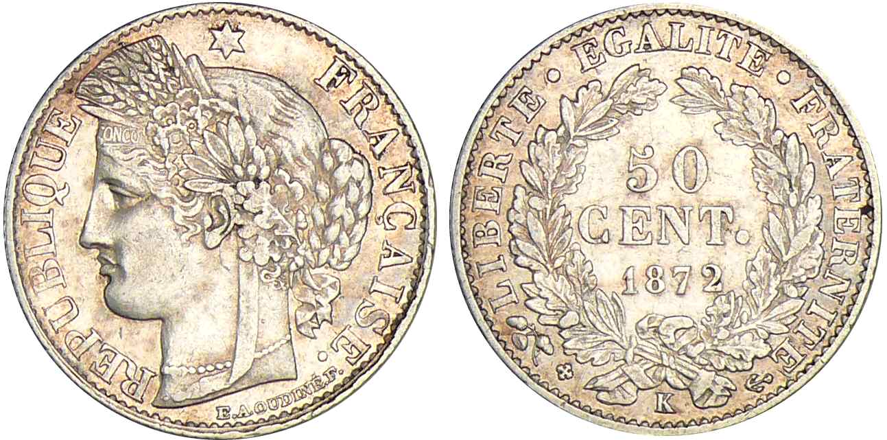 / 50 centimes Cérès – 1872 K (Bordeaux)
