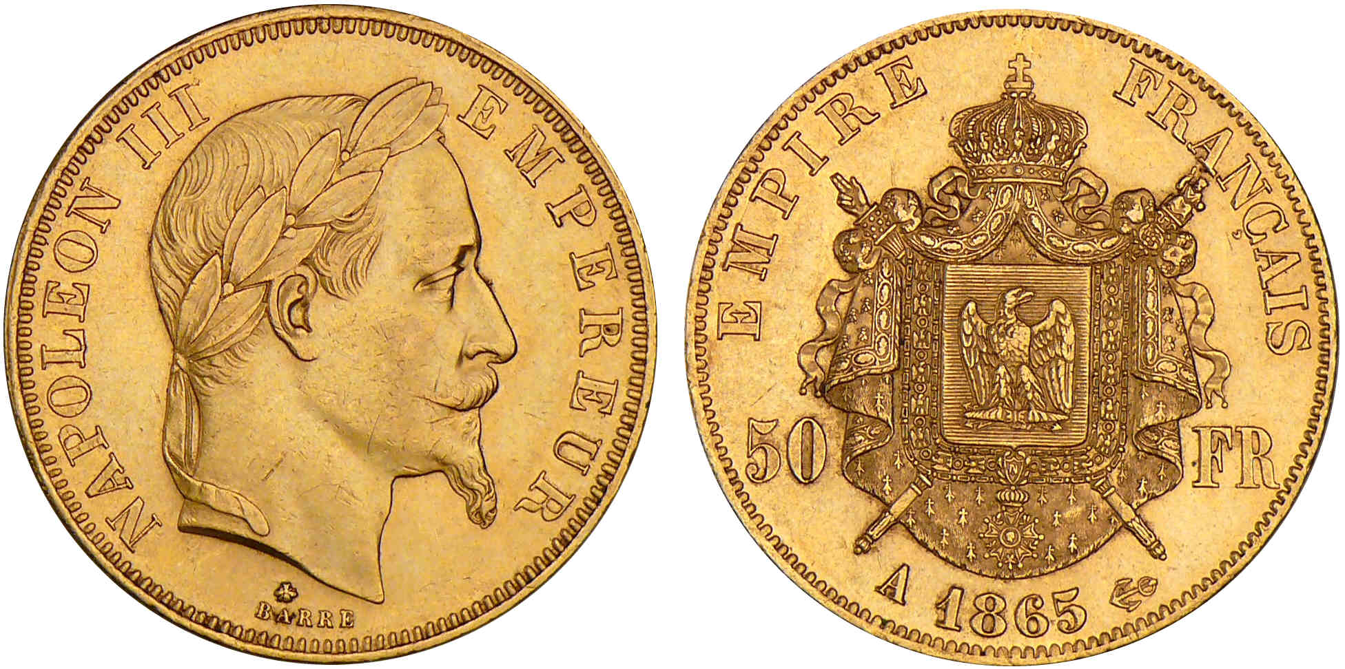 50 francs Napoléon III tête laurée 1865 A (Paris)