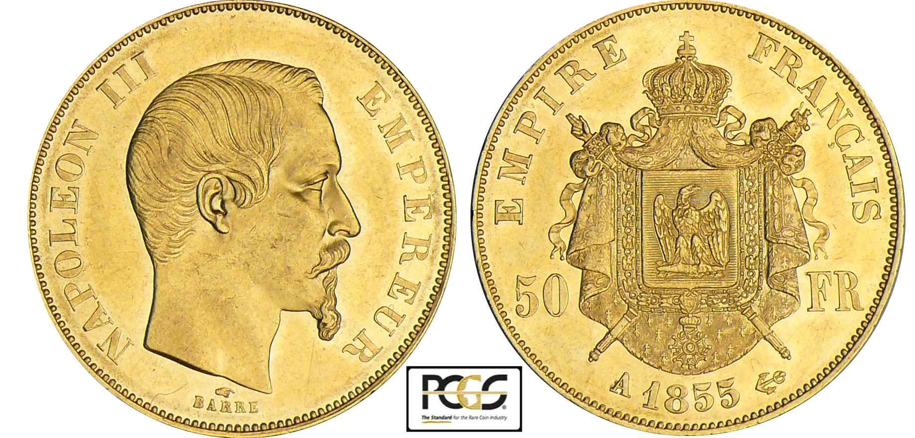 / 50 francs Napoléon III tête nue – 1855 A (Paris)