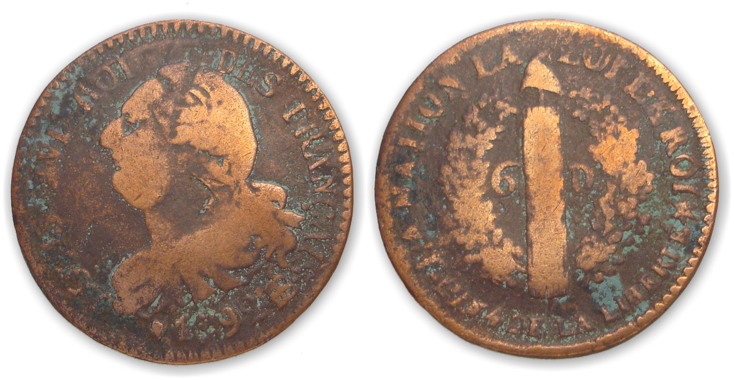 6 deniers type Français 1792 BB (Strasbourg)