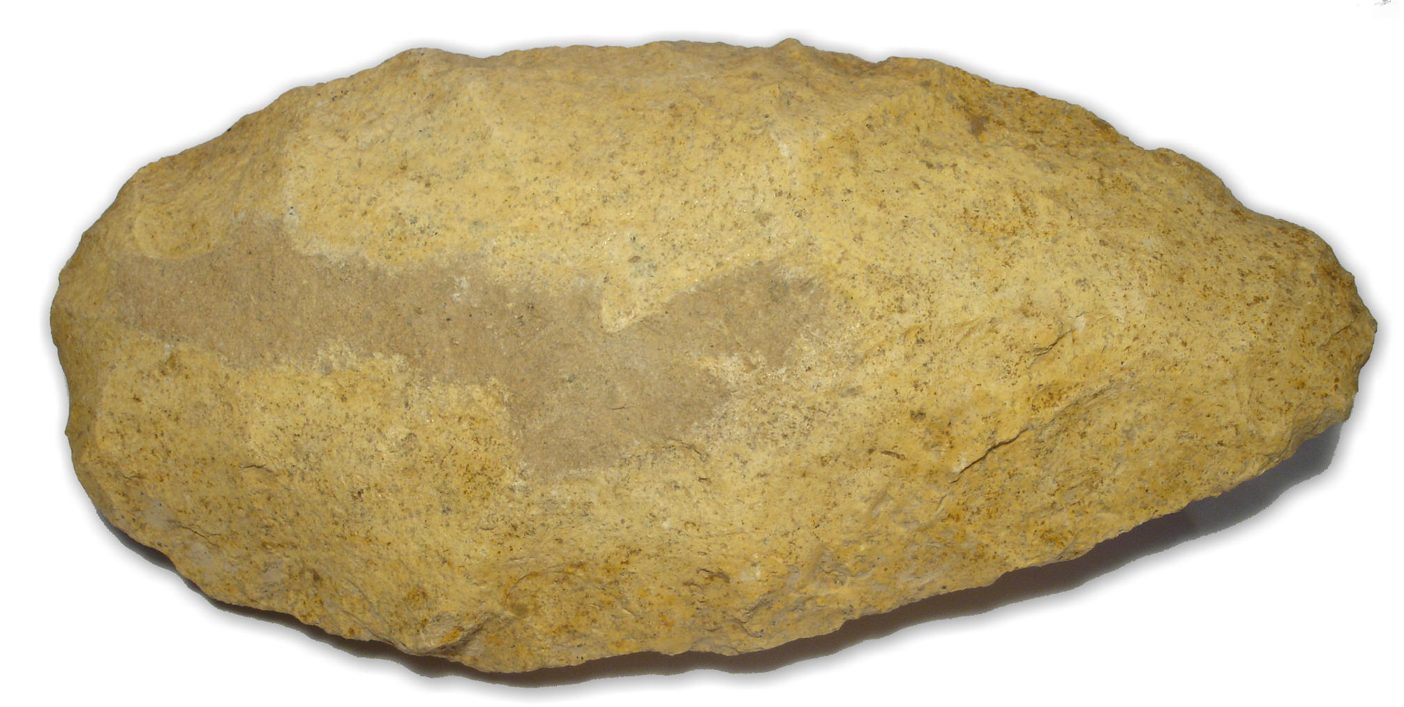 Avers : Rare biface en grès de la période acheuléen trouvé dans le sud algérien, ce bi-face provient de la collection Maurice Reygasse (Maurice Reygasse, Contribution à l’étude des gravures rupestres et inscriptions tifinagh du Sahara central.) dimension : 200 mm.