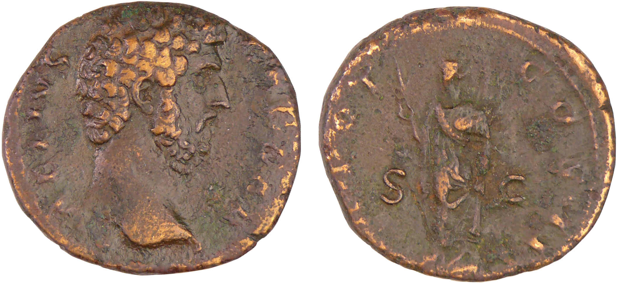 R/ TR POT COS II. L’Espérance marchant à gauche, tenant une fleur et relevant sa robe.