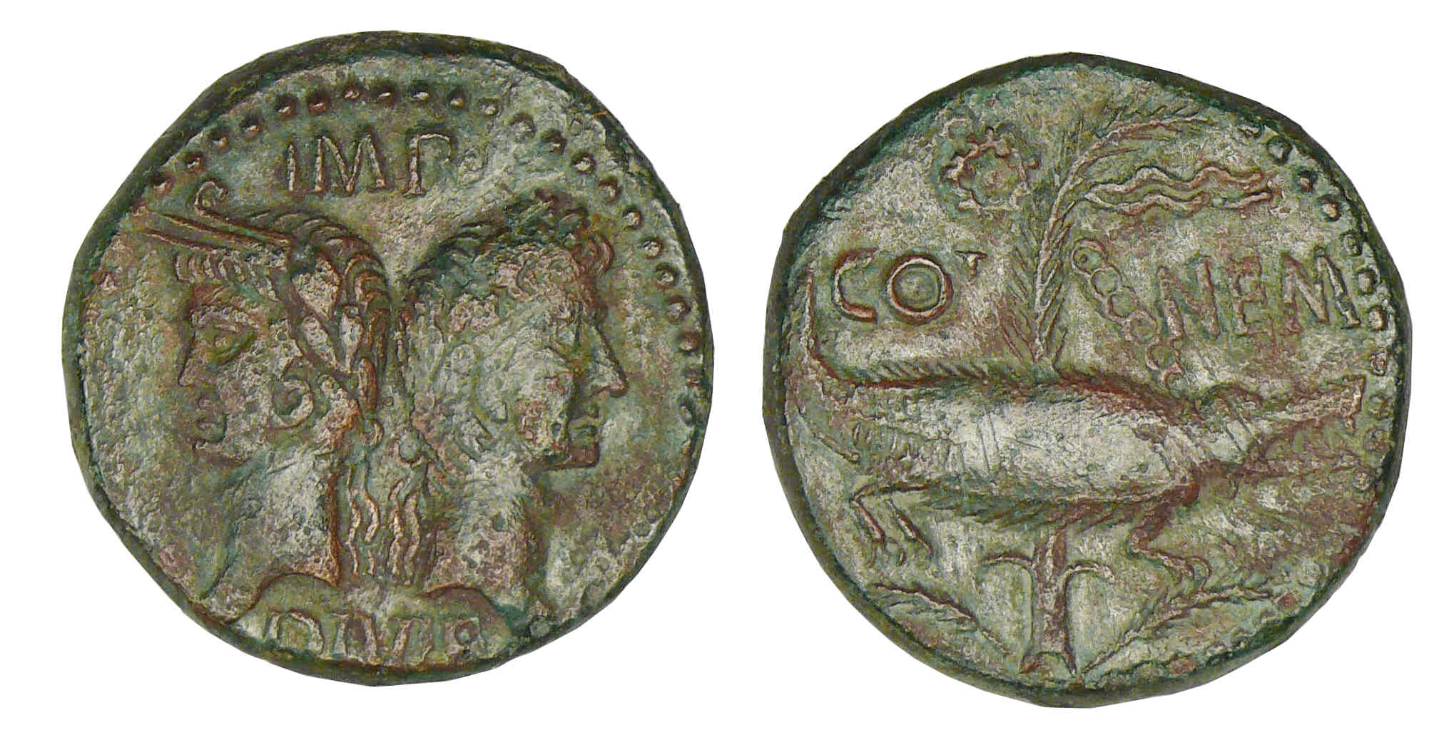 Agrippa et Auguste – As (10-14 av. J.-C., Nîmes)