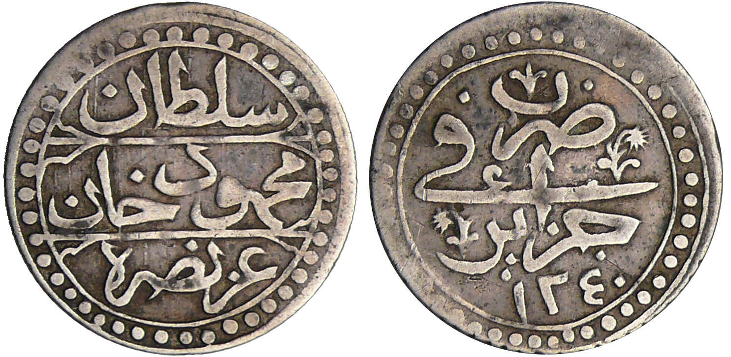 Algérie – Mahmud II (1808-1839) – 1/4 de boudjou 1240 (1825)