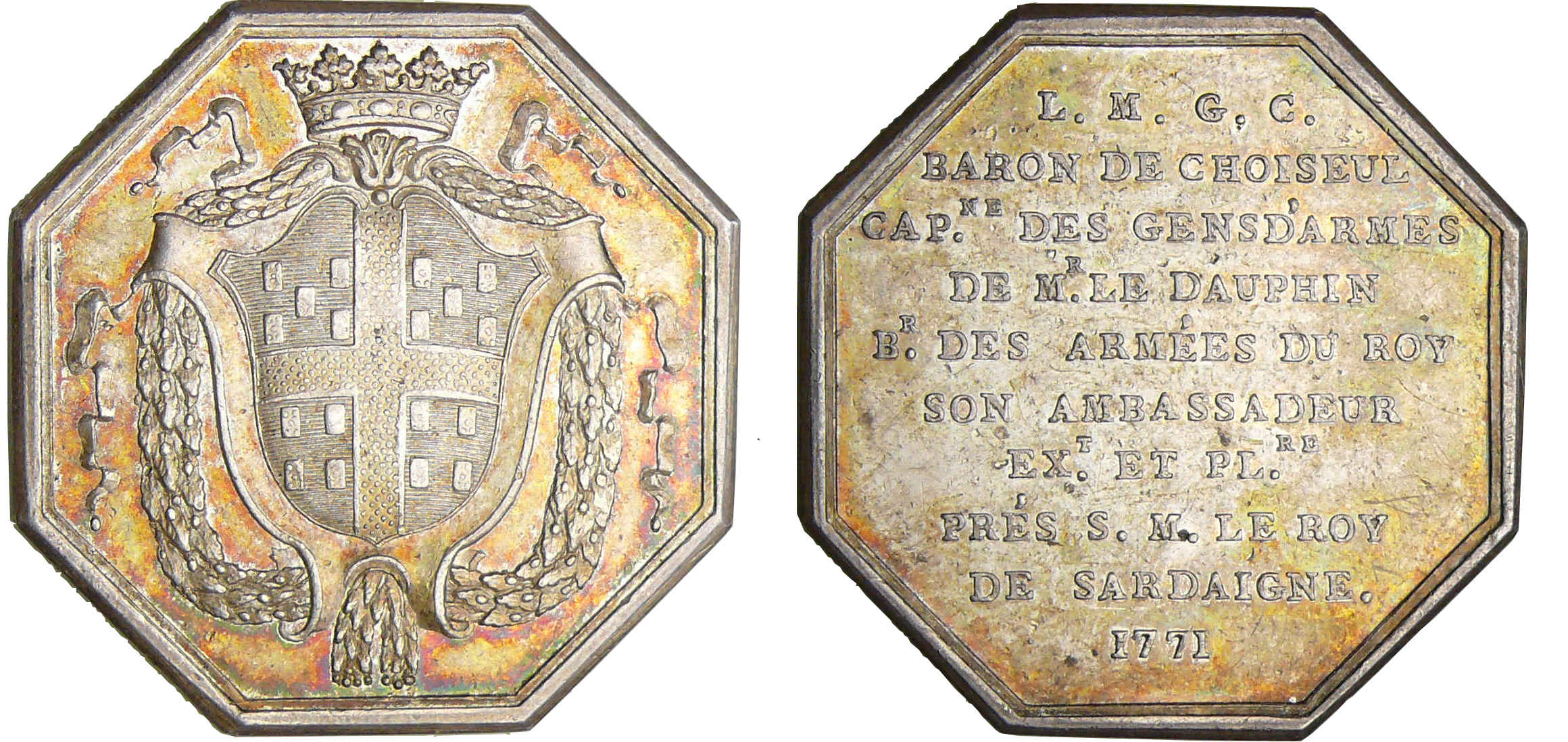 Jeton – Italie – Savoie – Baron de Choiseul capitaine des gendarmes 1771