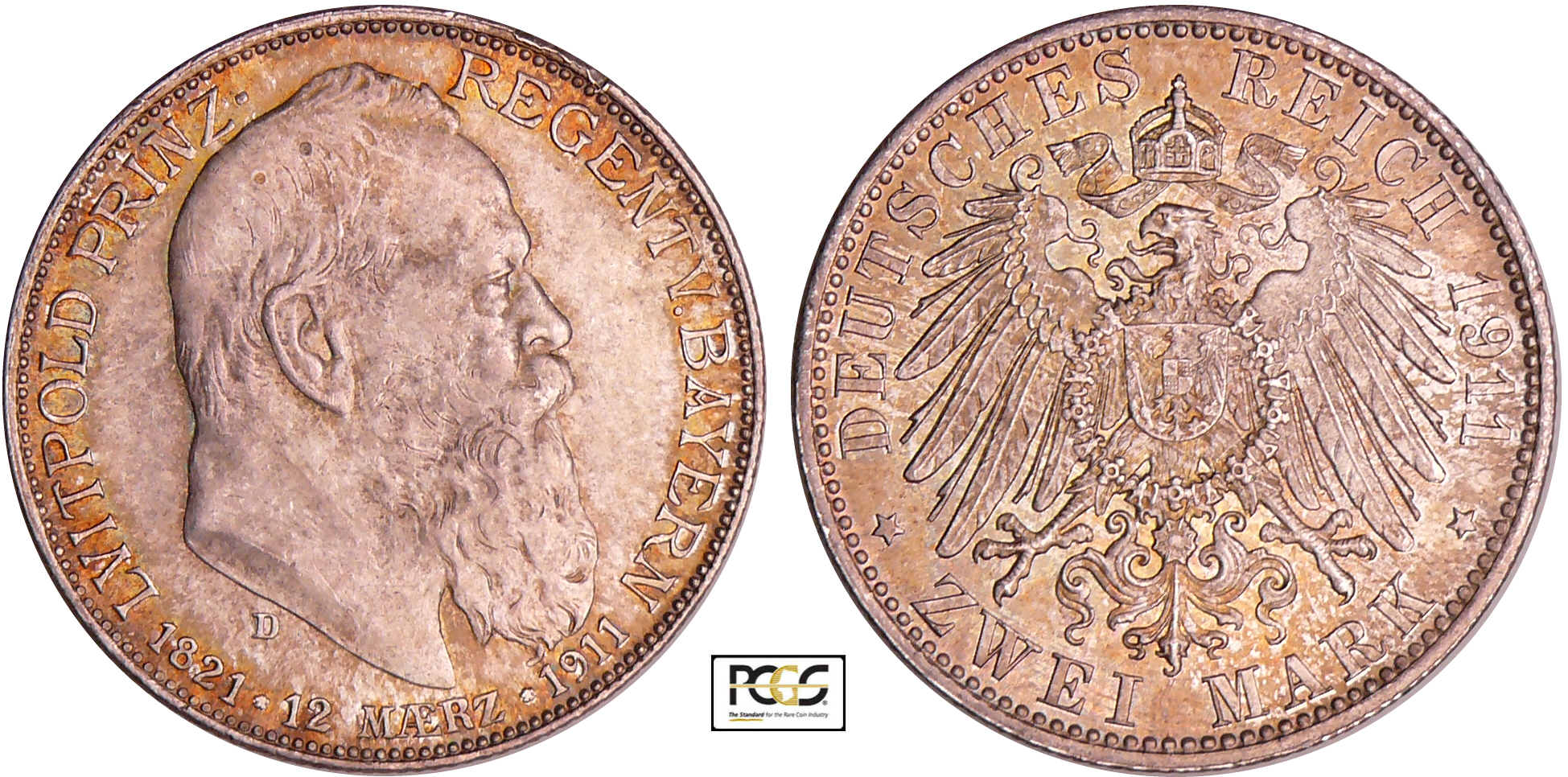 / Allemagne – Bayern – Prinzregent Luitpold (1886-1912) – 2 mark 1911 D