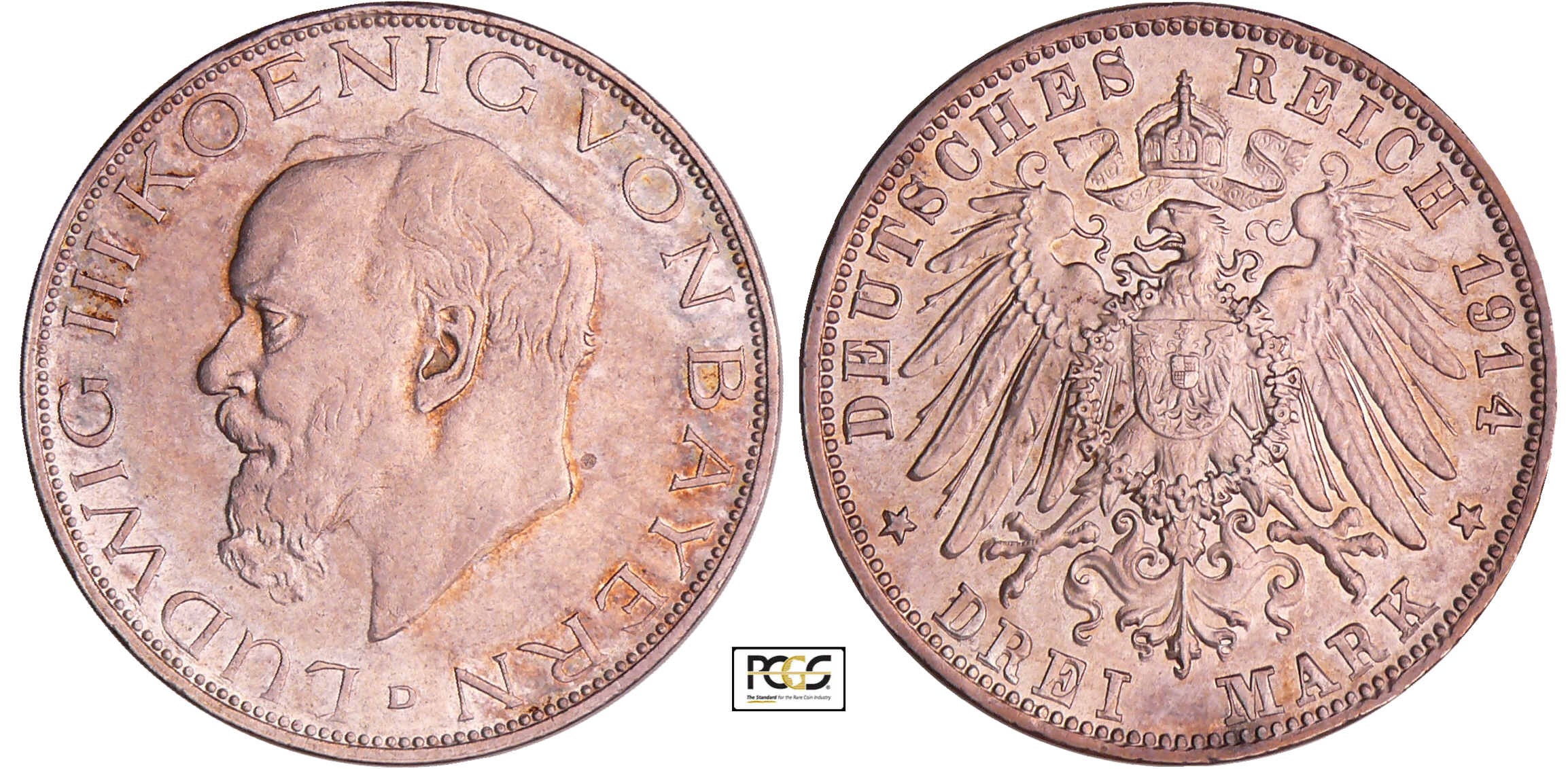 / Allemagne – Bayern – Prinzregent Luitpold (1886-1912) – 3 mark 1914 D