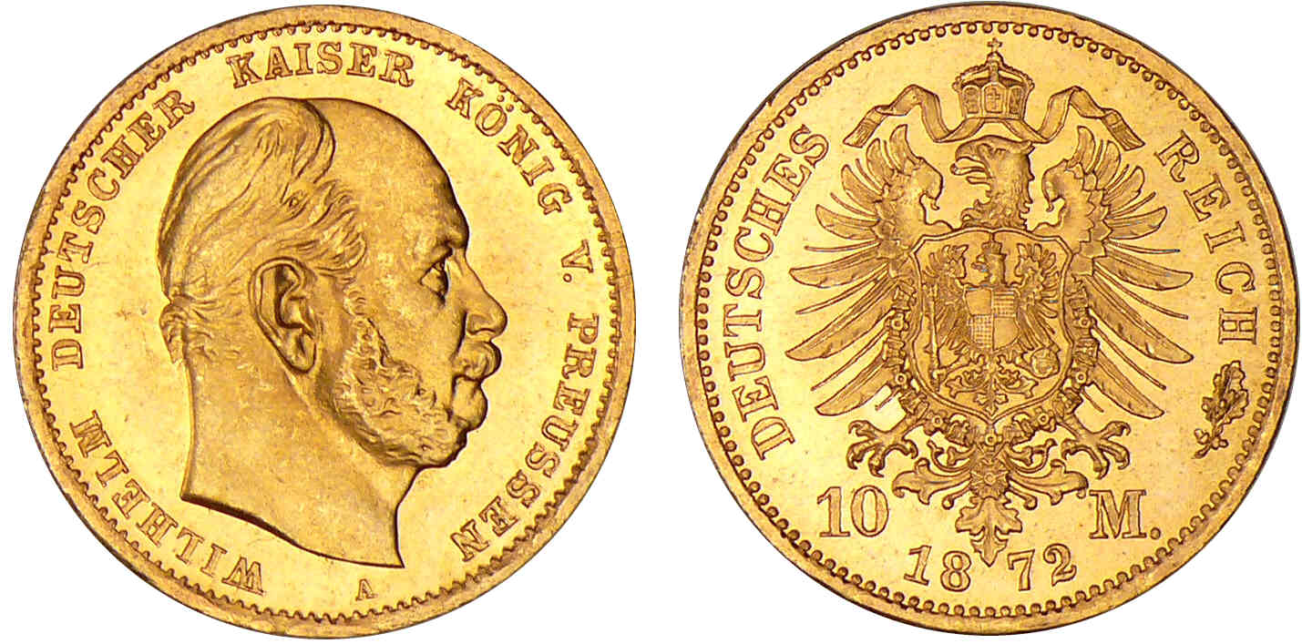/ Allemagne – Prusse – Guillaume 1er – 10 mark 1872 A (Berlin)