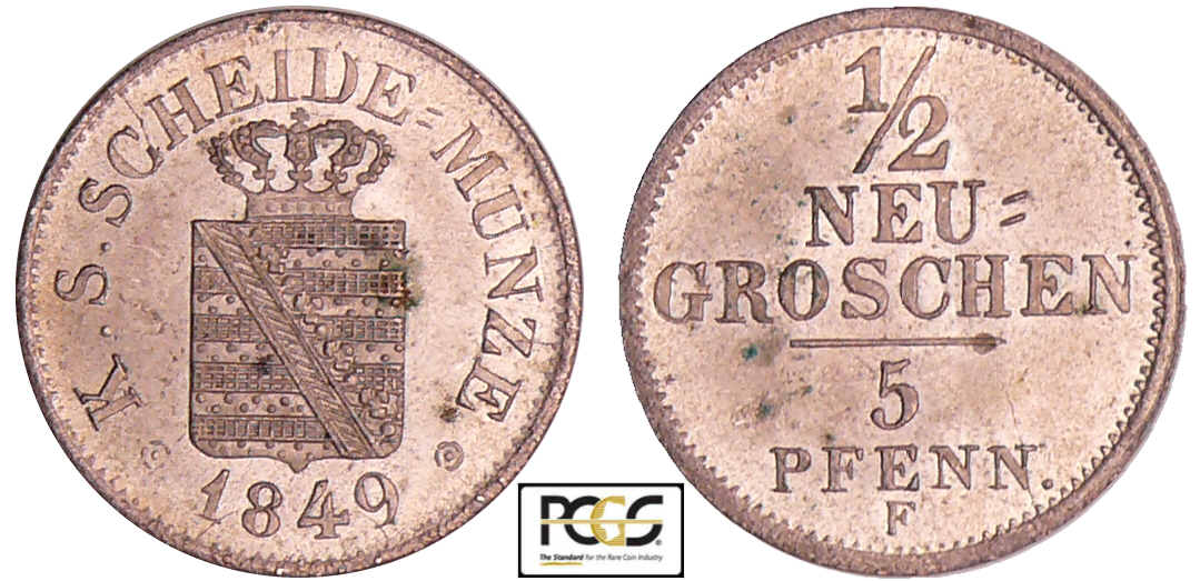 Allemagne – Sachsen – Friedrich August II (1836-1854) – 1/2 neugroschen 1849 F