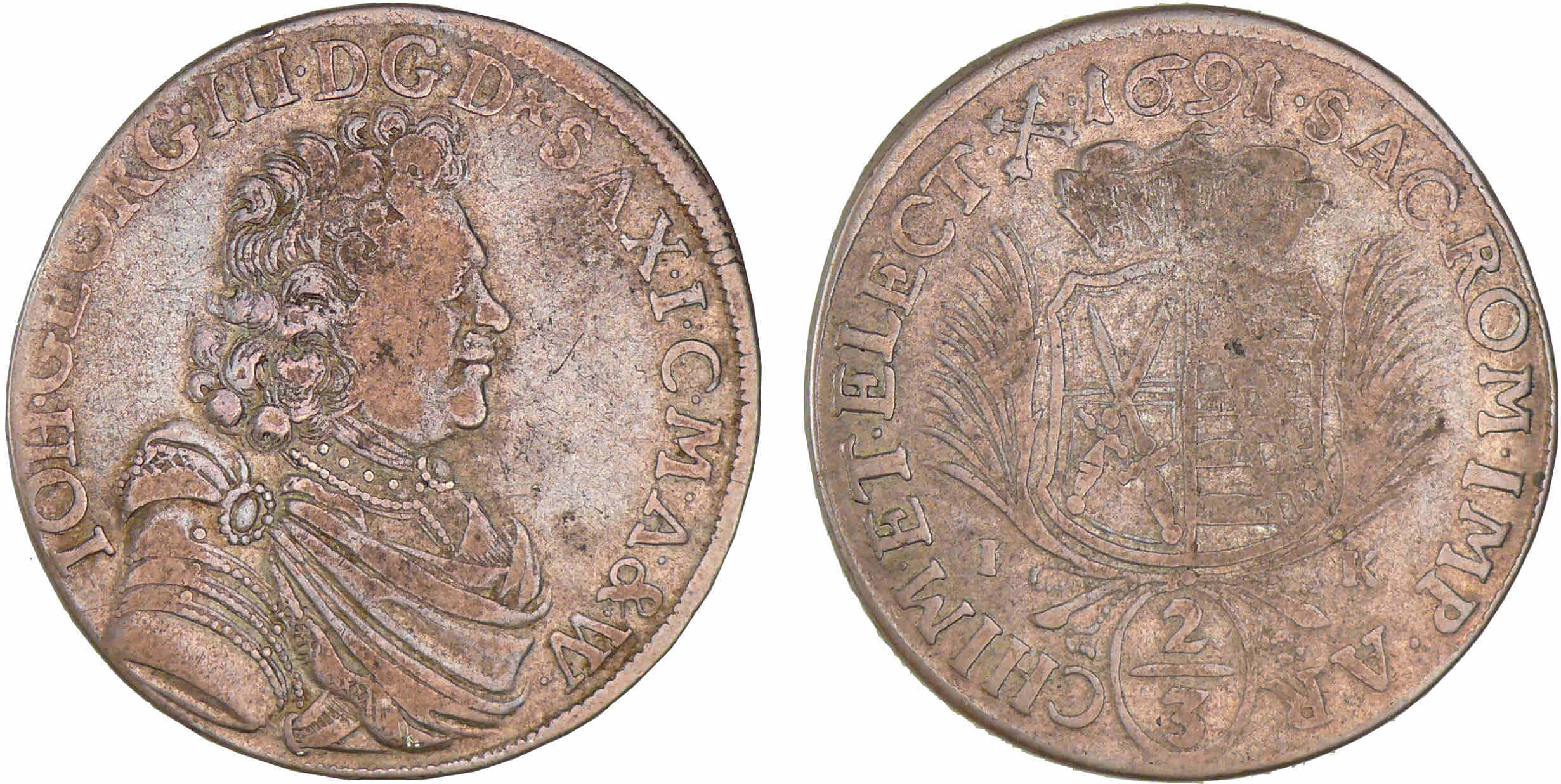 / Allemagne – Saxe – Johann Georg III – 2/3 de thaler 1691 IK