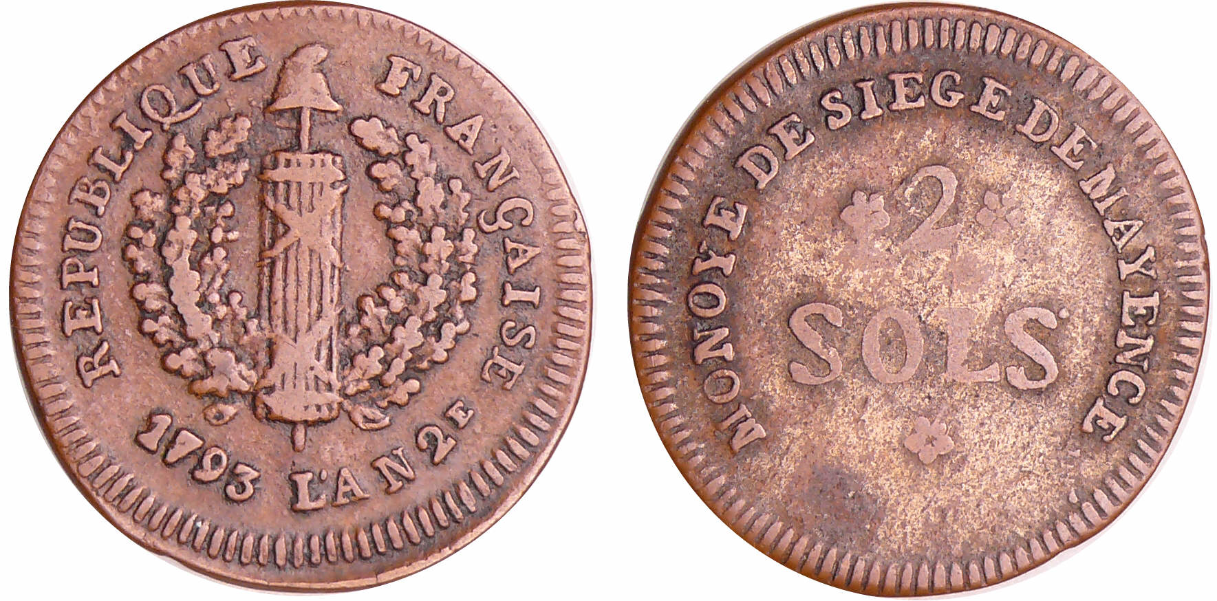 Allemagne – Siège de Mayence – 2 sols 1793 An 2ème
