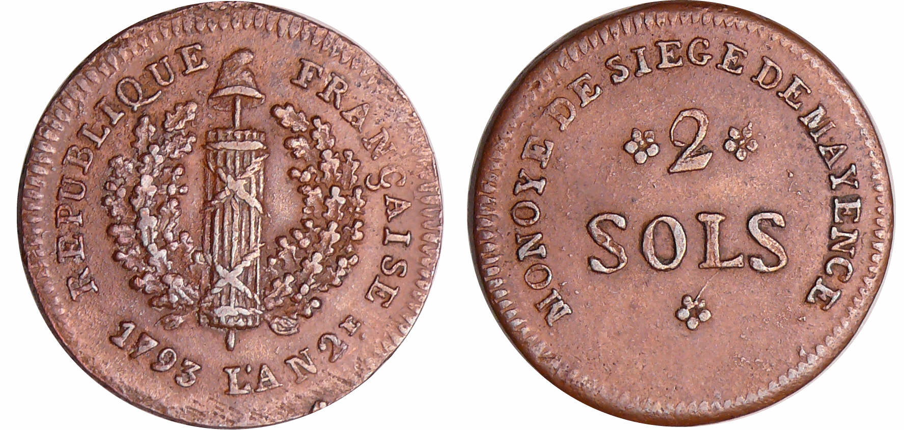 Allemagne – Siège de Mayence – 2 sols 1793 An 2ème