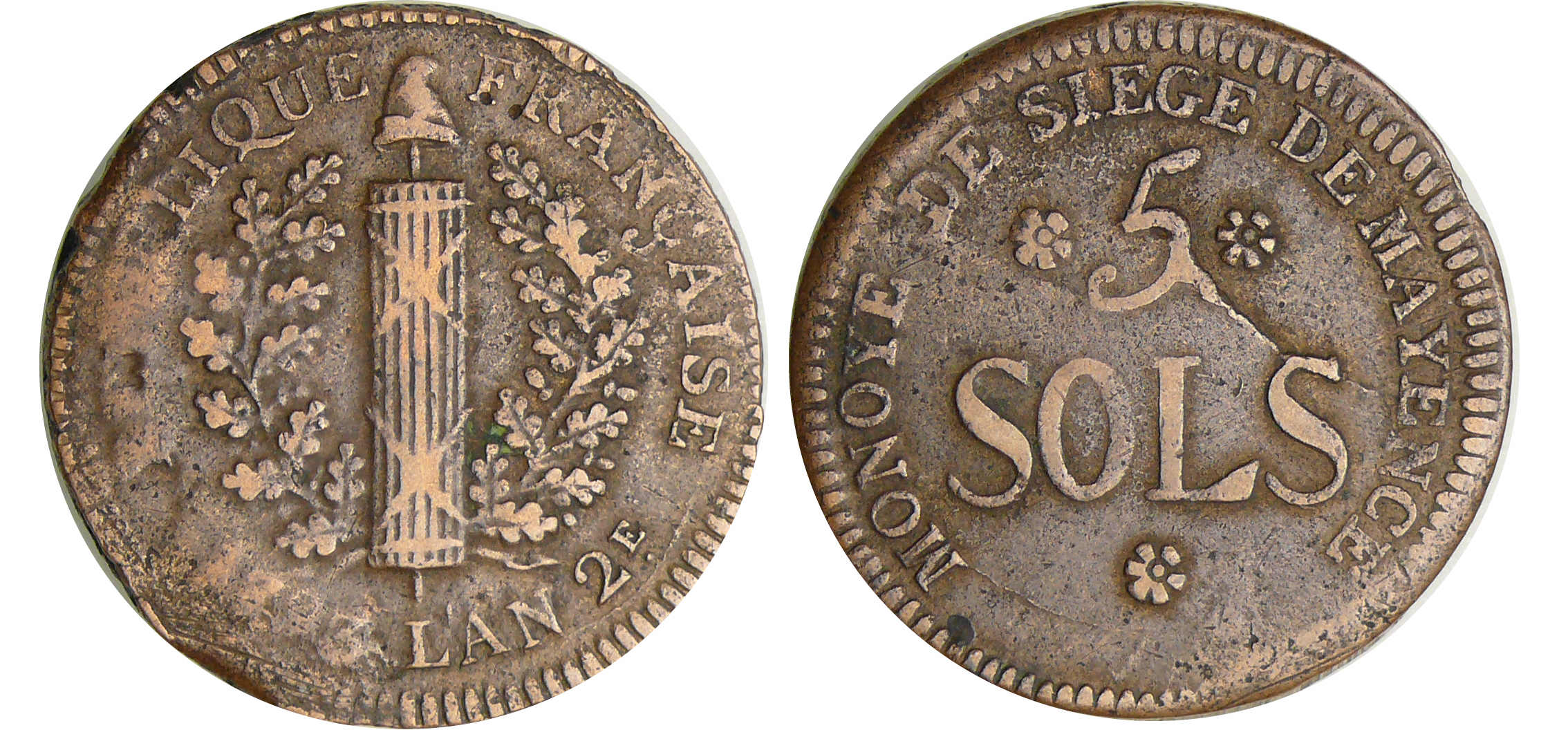 Allemagne – Siège de Mayence – 5 sols 1793