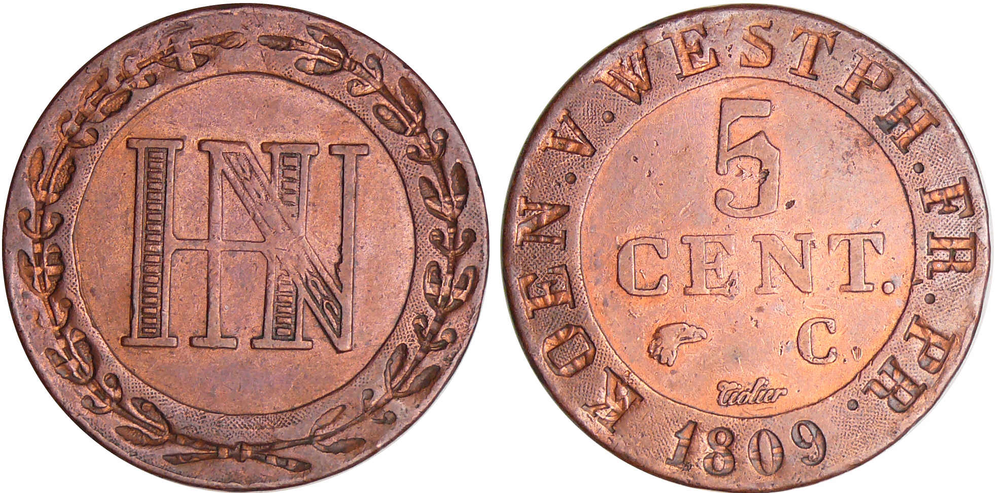 Allemagne – Wesphalie – Napoléon 1er (1804-1814) – 5 centimes 1809 C (Casel)