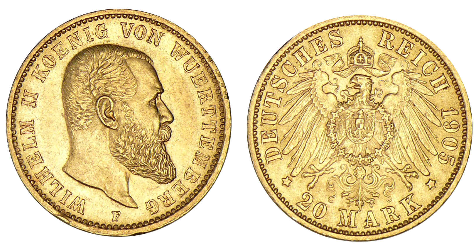 / Allemagne – Wurtemberg – Wilhem II – 20 mark 1905