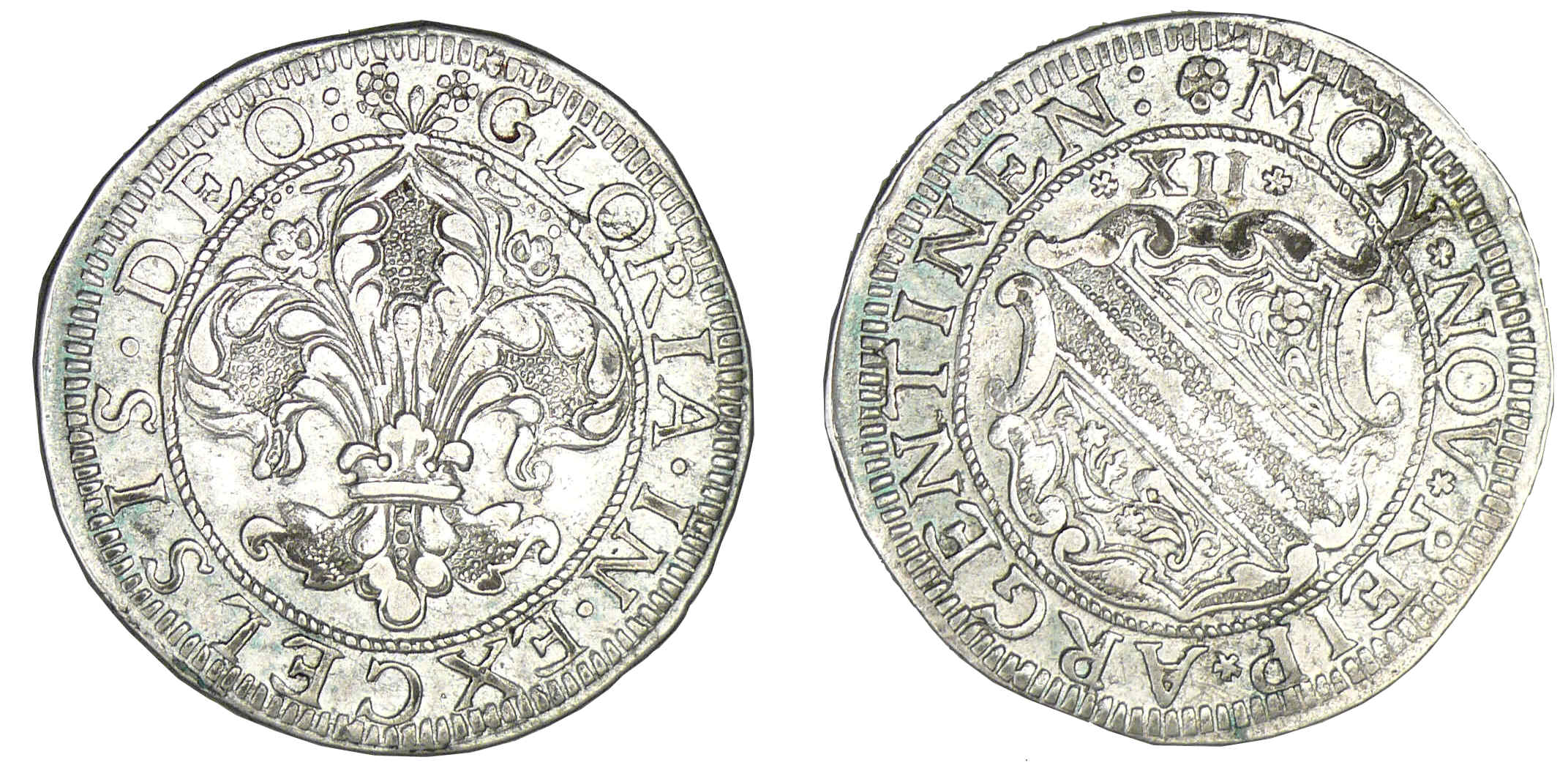 (1640-1658). A/ MON NOV REIP ARGENTINEN. Ecu échancré de Strasbourg, surmonté du nombre XII.