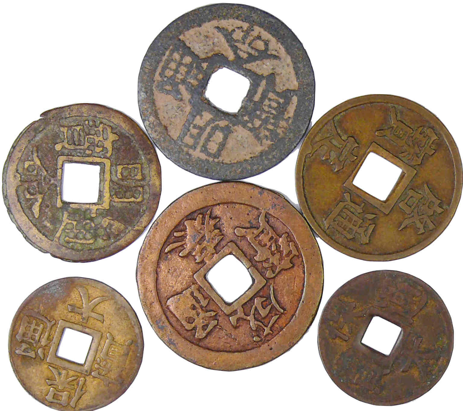/ Annam – Lot de 6 monnaies en cuivre