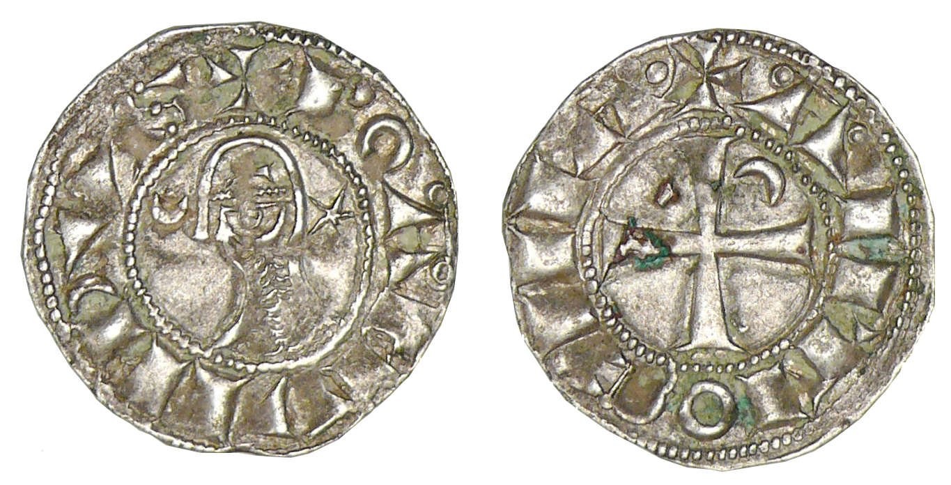 Avers : Bohémond III (1149-1163). A/+ BO°A°NVNDVS. Buste casqué à gauche, vêtu de la cotte de mailles, le casque timbré d’une croix. Devant le buste, un croissant ; derrière, une étoile à cinq rais.