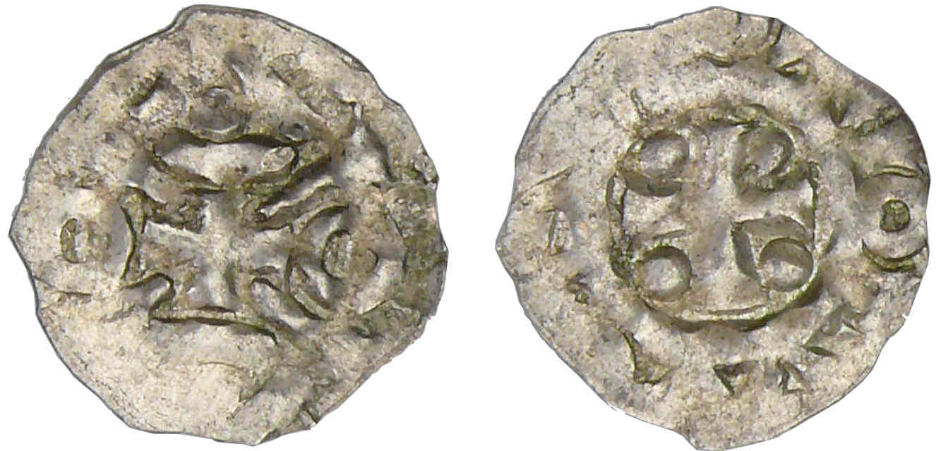 Avers : Guillaume Le Conquérant (1035-1087). A/ Croix sommet de deux annelets et de deux triangles pointés.