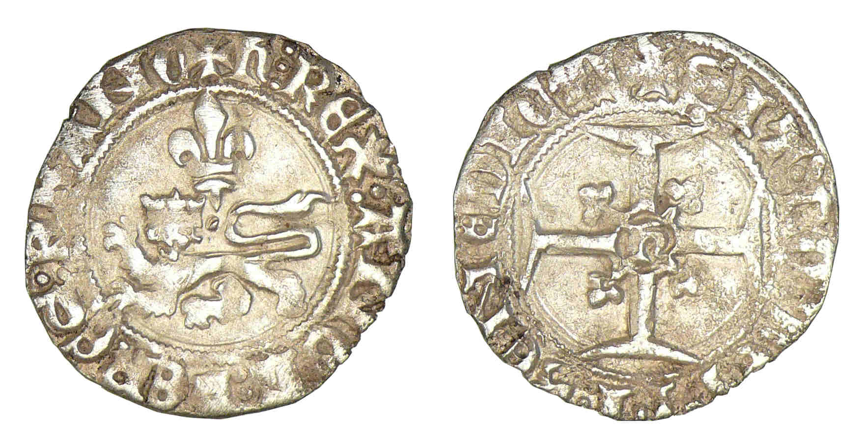 Avers : Henry V (1366-1413) A/ + h REX ANGL hERES FRANC. Léopard à gauche sous un lis.